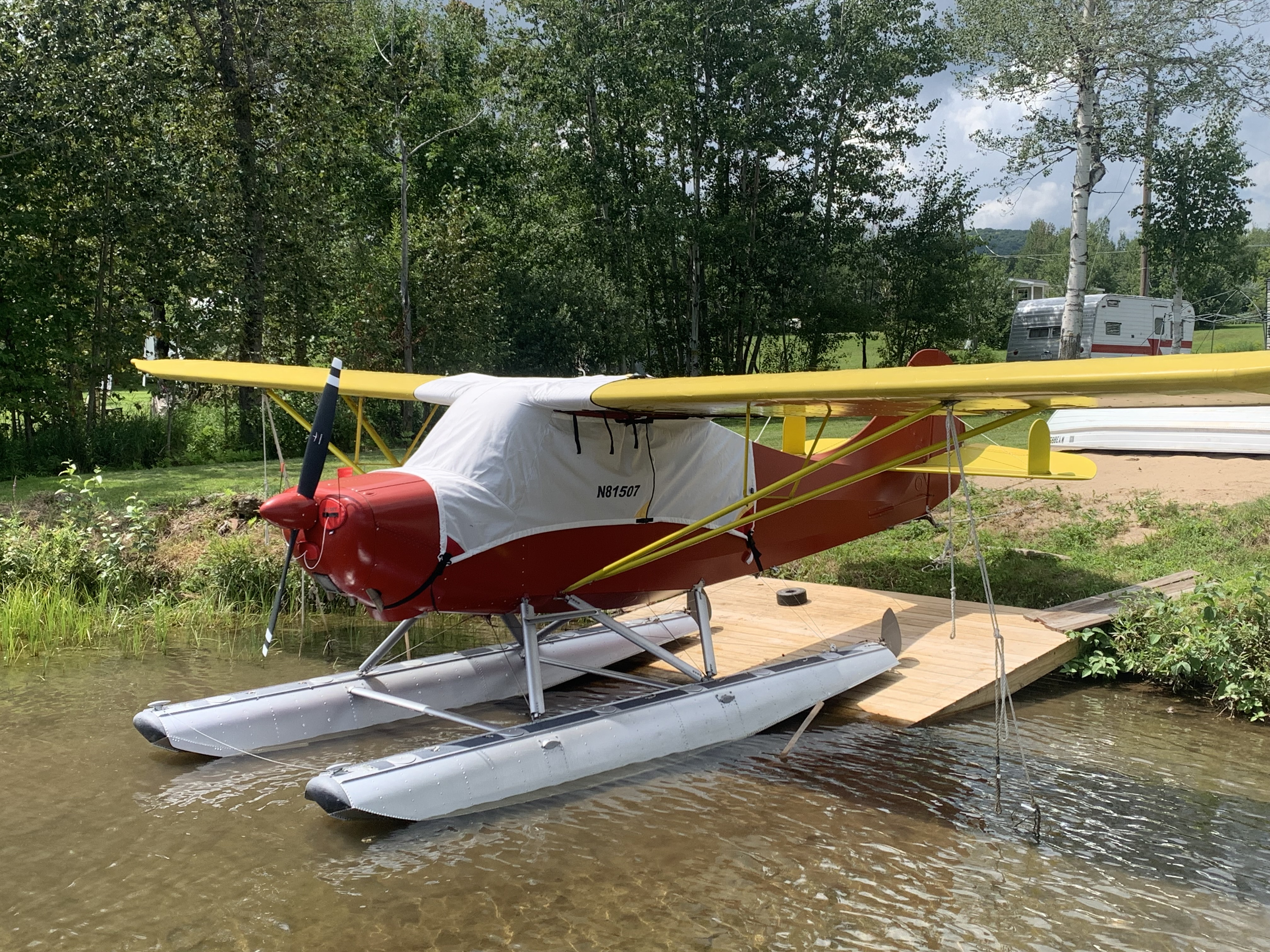 Bruce’s Cover new in 2022 EDO 1400 floats- overhauled in 2017 by Peck Aero Dual water rudders Hangared at KPBG |