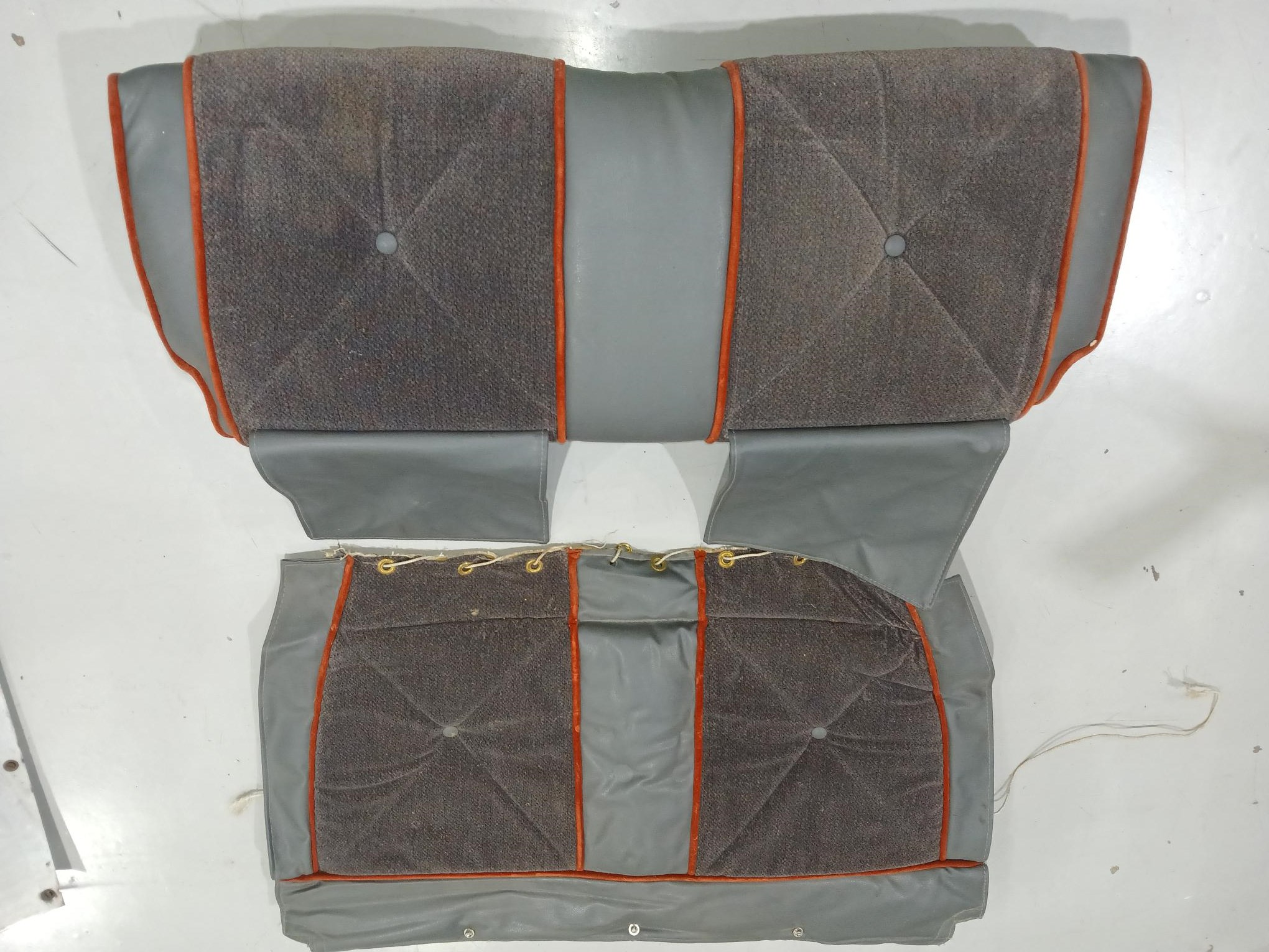 | New Dark Gray Fabric and Vinyl Upholstery, New Gray Carpeting and extra fabric and Vinyl cloth | |