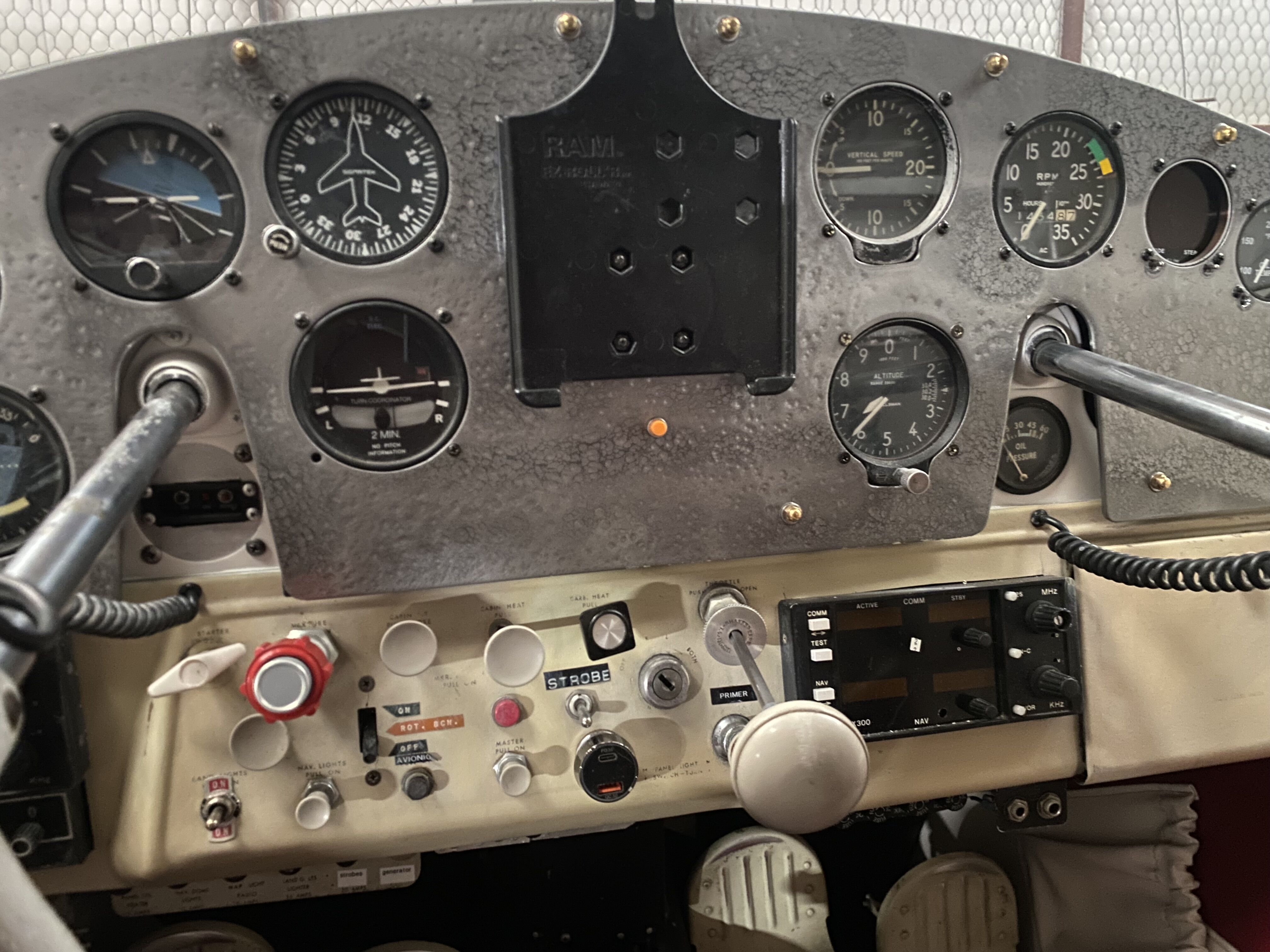 | Airspeed indicator, altimeter, and direction gyro, Dual flip flop digital radios, audio panel, VOR indicator, KT 76 Transponder | |