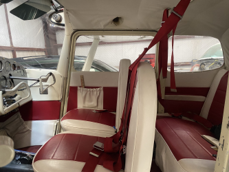 | 8/10 - shoulder harnesses (headliner very good) Pilots Co-pilots and back seats are vinyl and in good shape. | |
