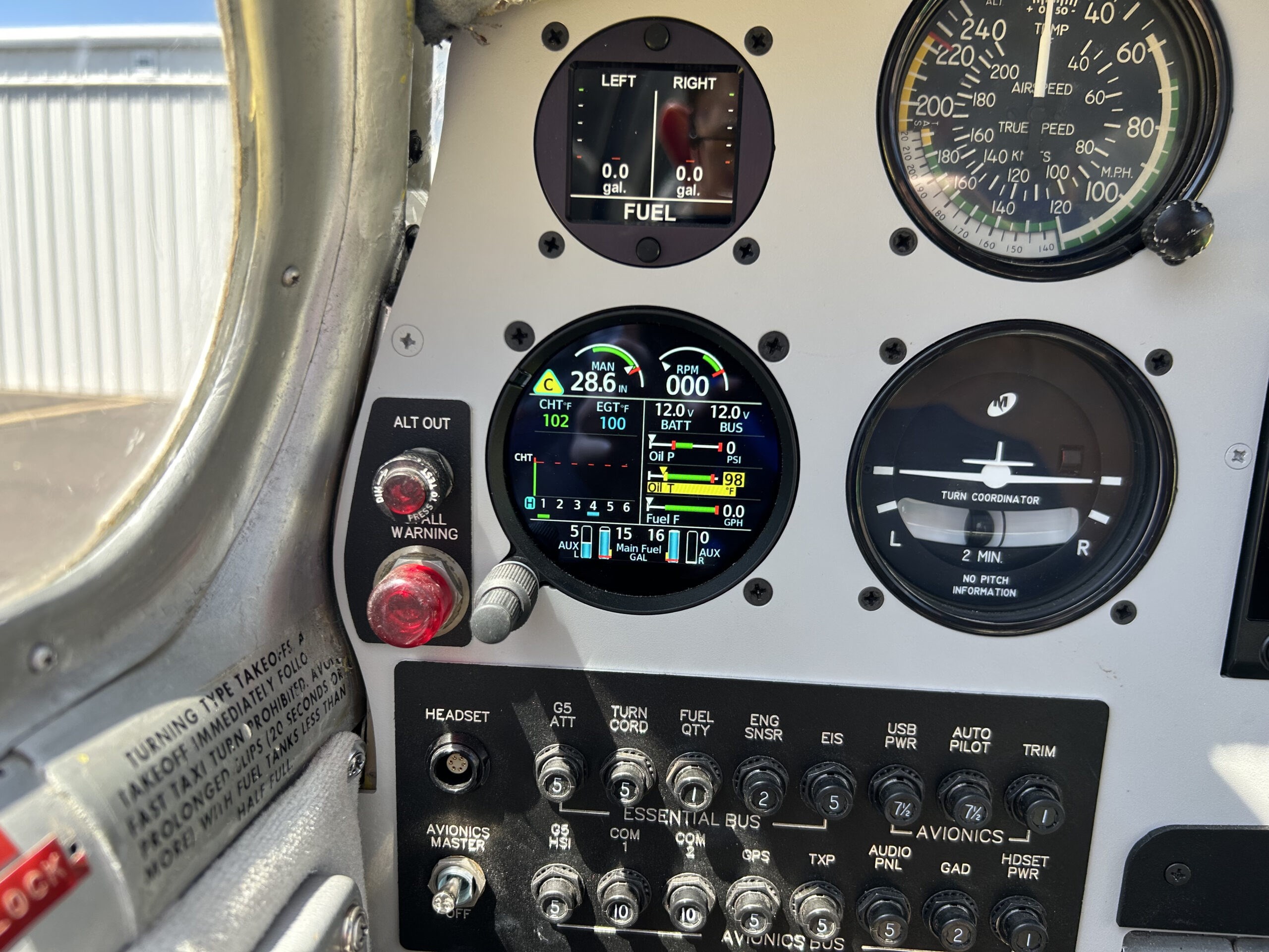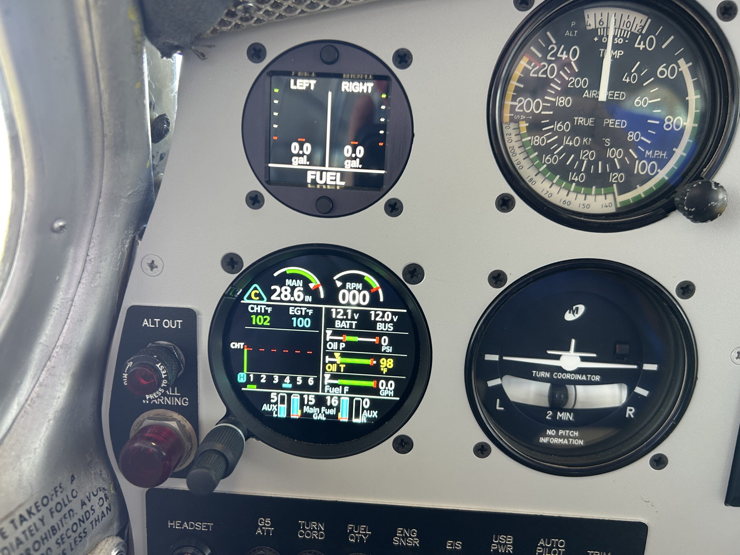 Garmin GI275 Engine Monitor with EGT, CHT, MAN, RPM, BATT, Oil P, Oil T, Fuel Flow, and Fuel Quantity