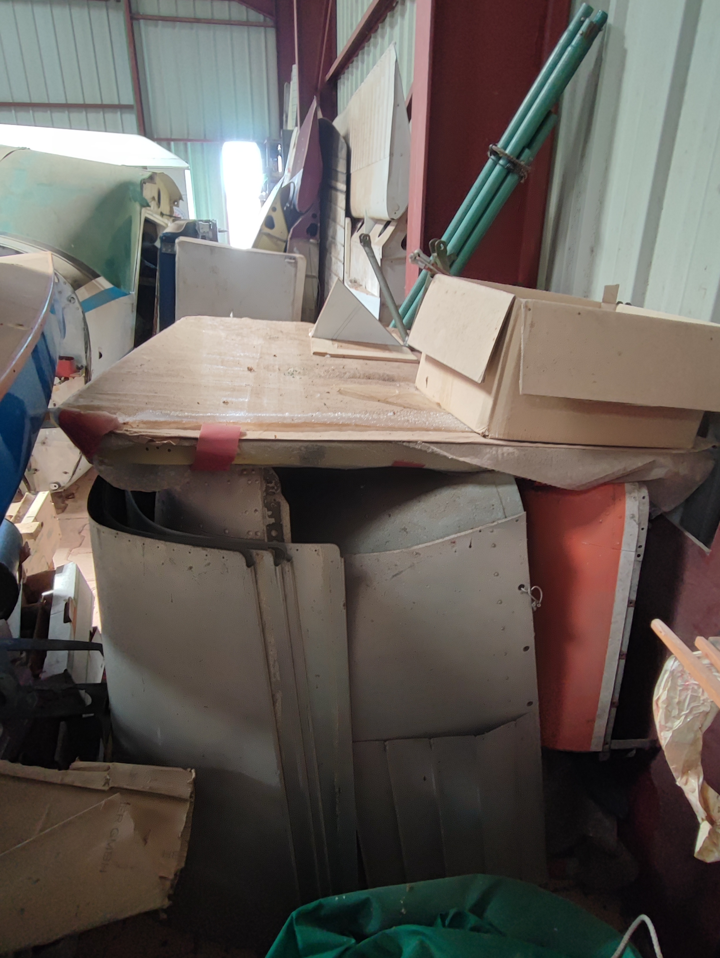 2685 TT - 1 Complete fuselage (airframe) - 1 Tinted windshield mounted on the plane + 1 clear as part, both in very good conditions - At least 6 elevators + 4 brand new without paint (Only primer) - 2 Rudders - 4 doors, left and right, with windows and in good conditions - 4 sets of ailerons and flaps - 2 fix plans (back fix elevator) - 1 set of complete wings (with ailerons and flaps) + 1 new wing (painted with primer only) - 2 Rudder cones - 1 new door in box (right) - At least 6 Engine cowls (upper and lower) with 4 new (I couldn't count, check pictures below) - Sets of windows left and right, (one with broken plexiglass) - 1 rudder (comes with the fuselage) - Multiple original airplane parts, (prop cones, full old avionics, 2 tailwheels frames, etc) - 1 set of seats (front and back + One back seat) - Dashboard, - Five boxes full of various Cessna instruments - Full front landing gear (including tailwheel mounting and controls) - Numerous other unlisted parts (both used and new) |