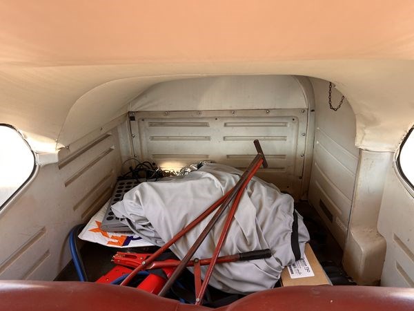 | Red fabric and vinyl seats with matching side panels and carpet. Cream headliner. Overall rated 5 out of 10. | |