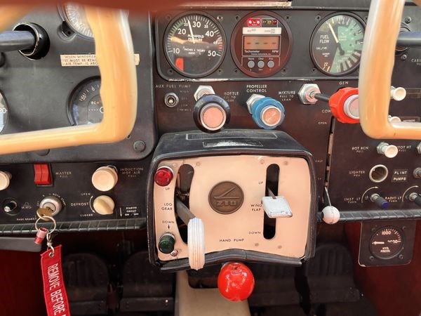 Useful Load: 1076 Lbs 60 gallons in main tanks. 24 More in Flint tip tanks. 84 gallons total Hydraulic powerpack replaced in 2002 BAS inertia reel shoulder harnesses in front| Seat arrestor belt Rudder trim Fire extinguisher Dual landing lights in left wing Rear vents Tinted visors Double puck HD Brakes Rotating beacon Monarch gas caps Alternator Nav light detectors Jacking points Cover Towbar Stainless steel screw kit |