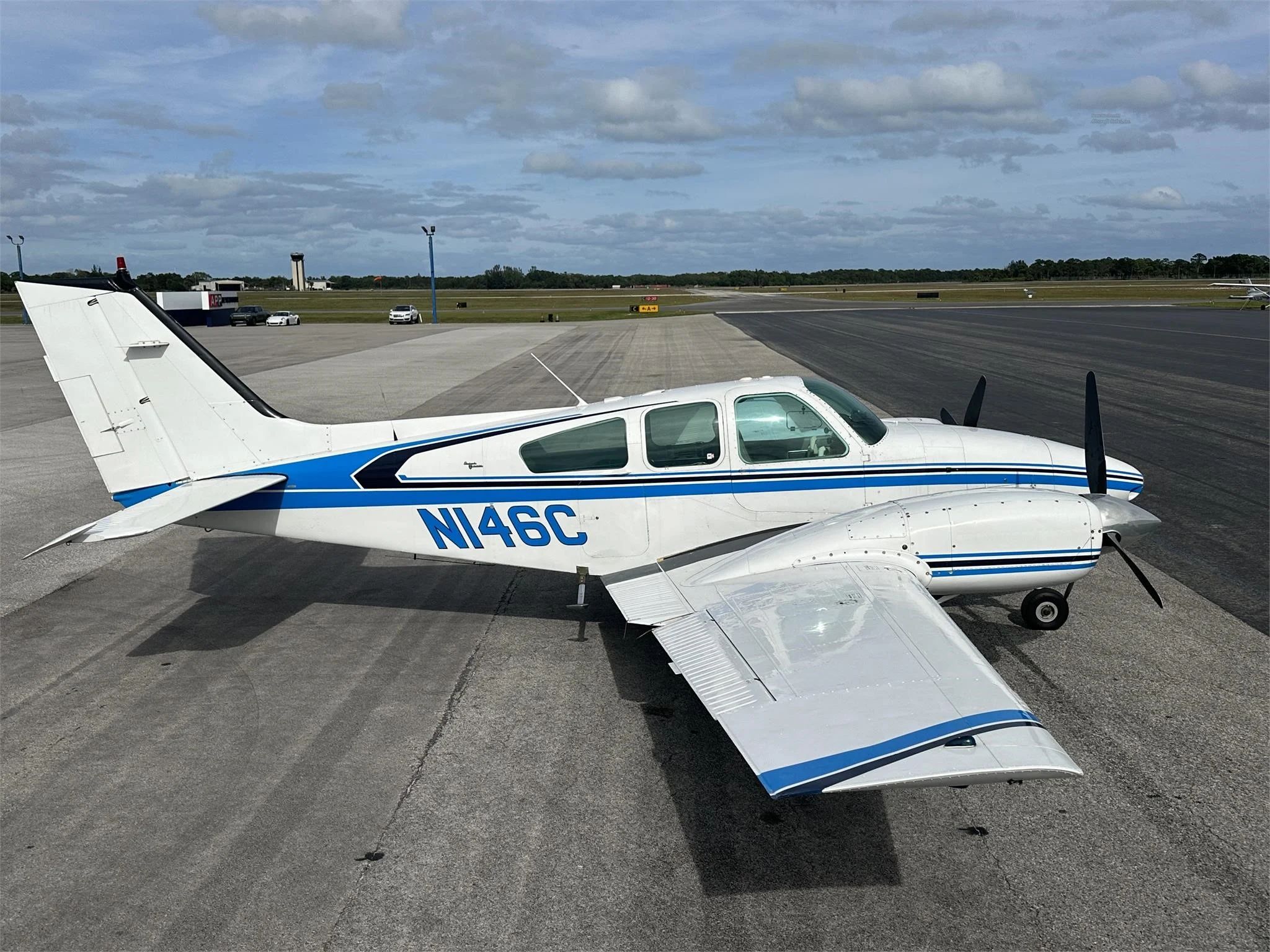 | White and Blue in classic Beech Baron Scheme | |