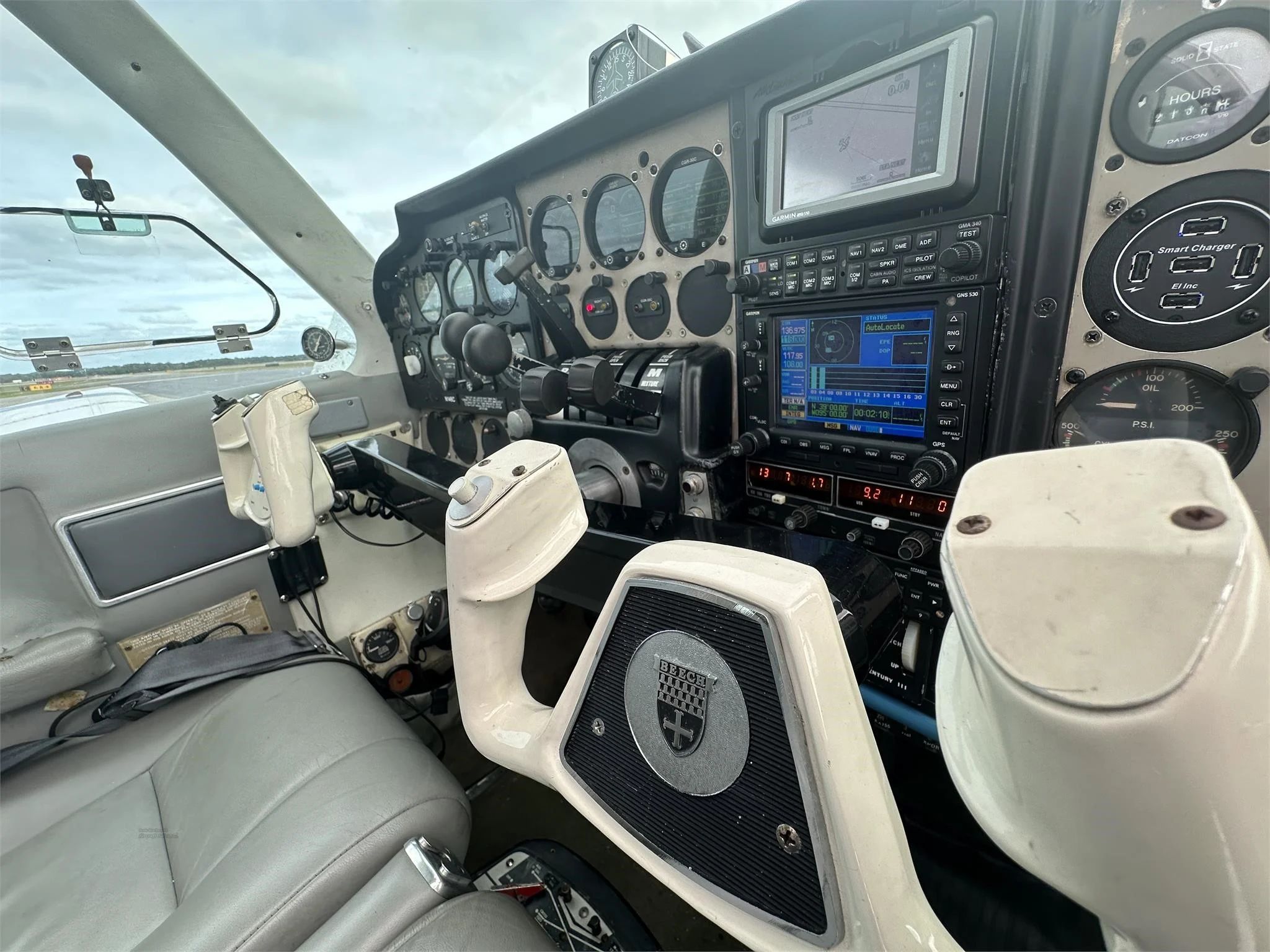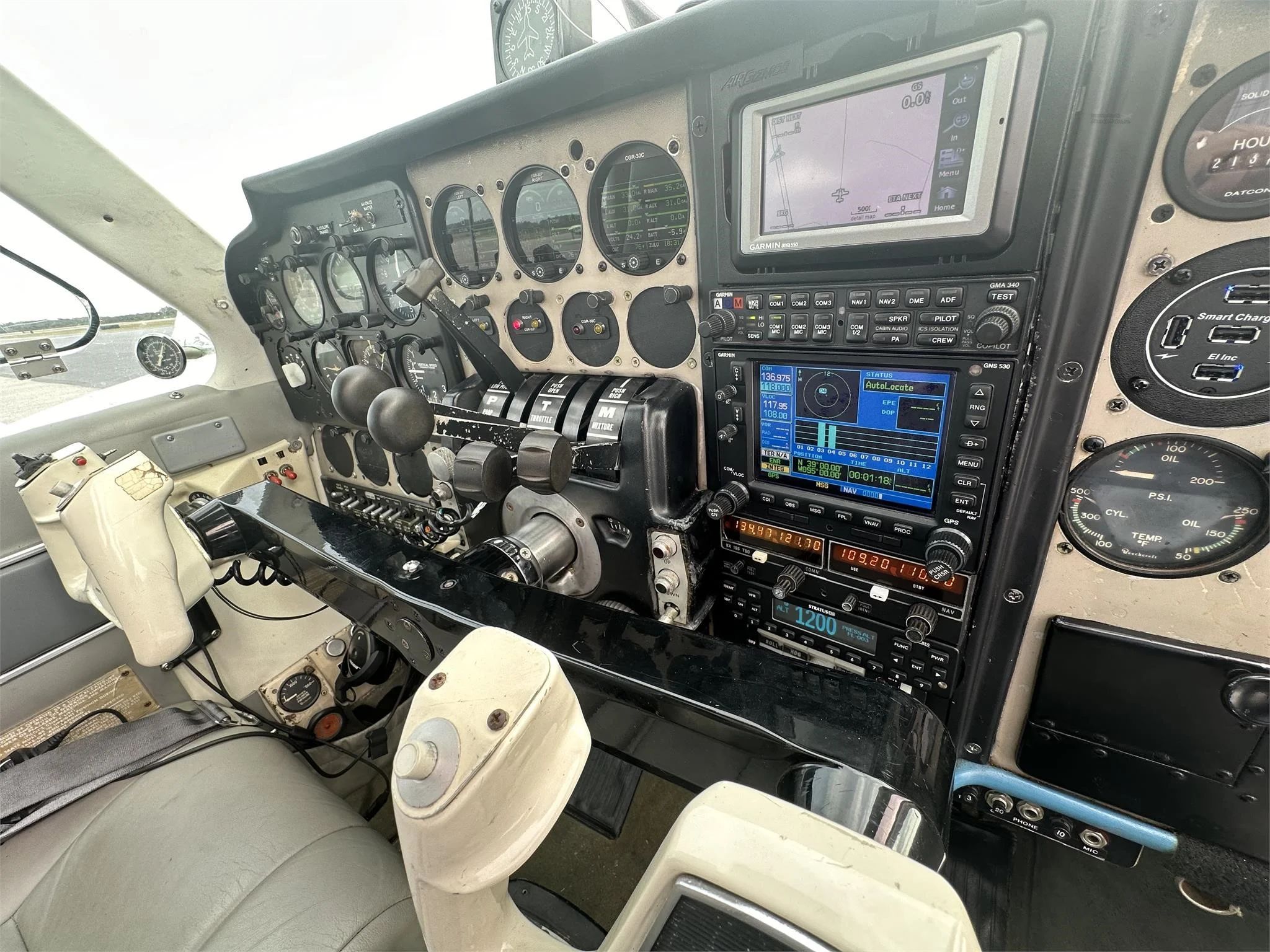 Gamin GMA 340 Audio Panel Garmin GNS-530 WAAS Garmin Area 550 Panel Mounted King KX-155 Digital Nav/Com Stratus Transponder with ADS-B Century III Autopilot Century HSI Dual GS Dual PTT |