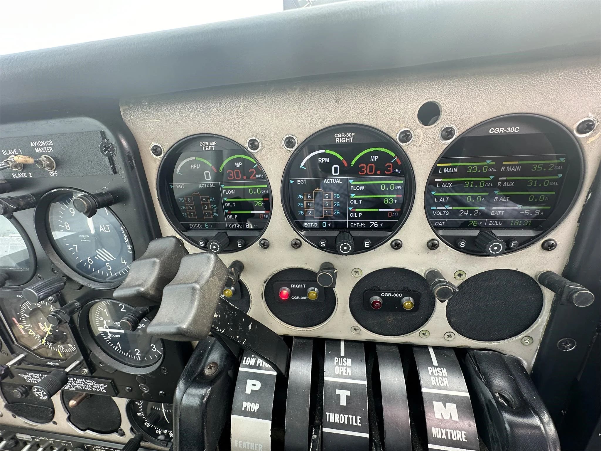 Dual Rams Horn Yokes Three (3) CGR 30P Color Digital Engine Monitors and Fuel Flow Management EI Smart Charger Position Lights Landing Lights Beacon Lights Digital Clock on Ram Yoke. Modifications/Conversions Rosen Visor System |