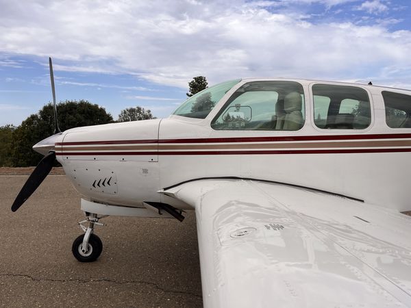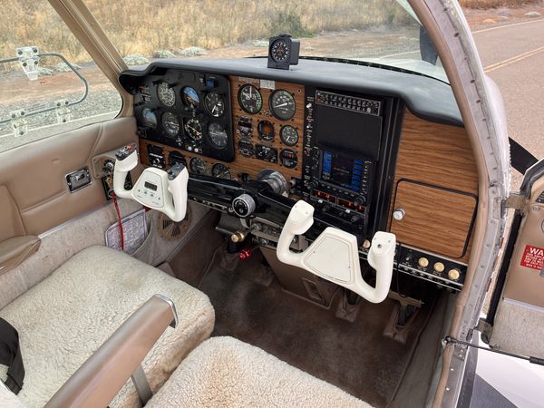 Usā eful Load: 985 Lbs 74 gallons fuel capacity Spar Eddy current AD just complied with Speed brakes Large baggage area Armrests New battery Headrests Inertia reel shoulder harnesses Double yoke Rosen Visors New brakes Front and rear air vents Gear mirror Gami injectors Wingtip strobes Ventral belly strake Static wicks Tinted glass Polished spinner Door steward |