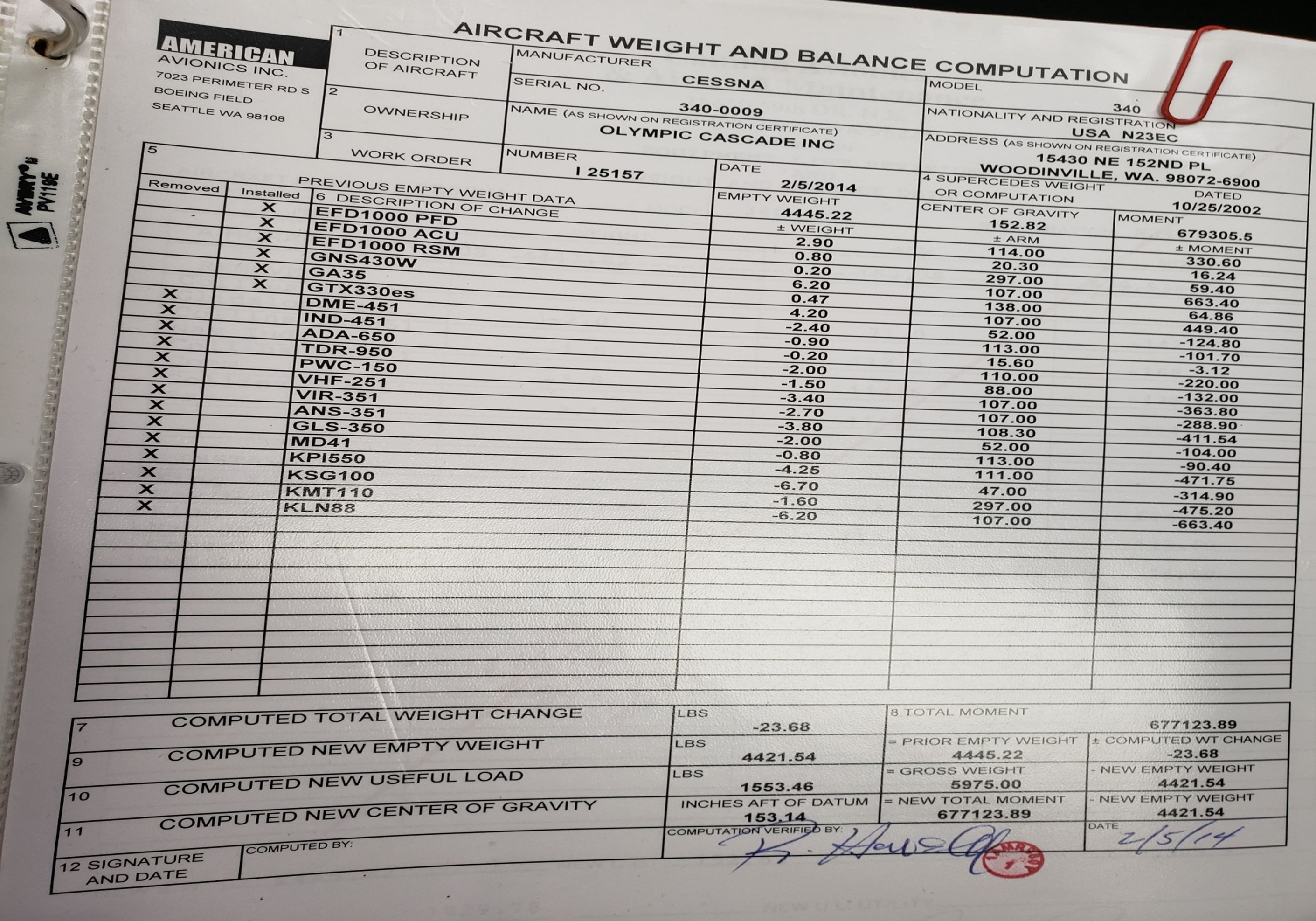 Engines: TSIO-520-KCJ & TSIO-520-J Left Engine SN: 504200 Left Engine SMOH: 762.2 (1996, TW Smith Engine Co.) Right Engine SN: 503212 Right Engine SMOH: 771.6 (1996, TW Smith Engine Co.) Engine HP: 310 Per Side (Upgraded from Original 265 Per Side) Props: McCauley 3 Blade 3AF32C504-C Left Prop SN: 951152 Left Prop SPOH: 75 Right Prop SN: 951136 Right Prop SPOH: 75 Prop OH’s: April 2014 (Northwest Prop Services, Puyallup, WA) |