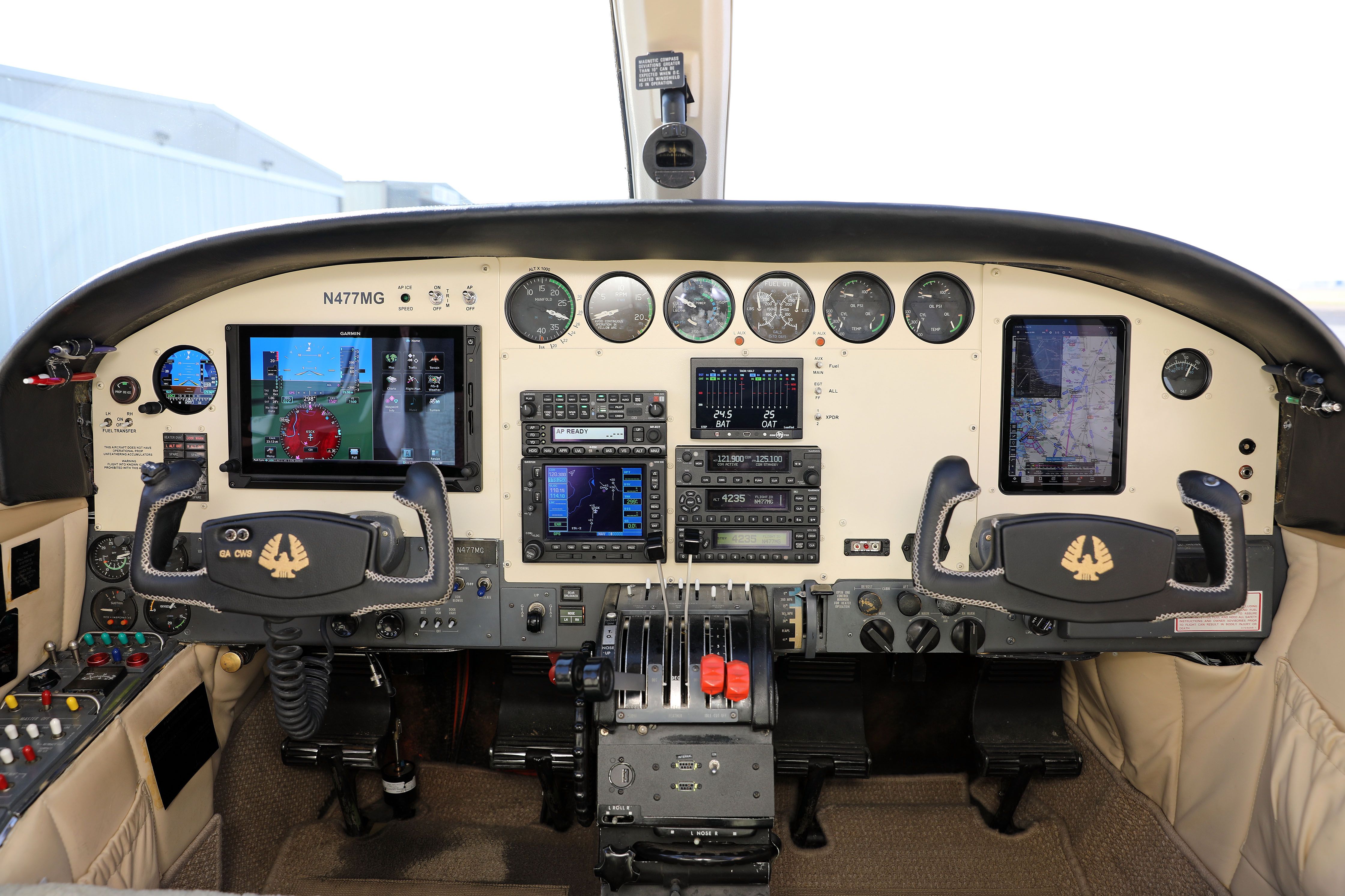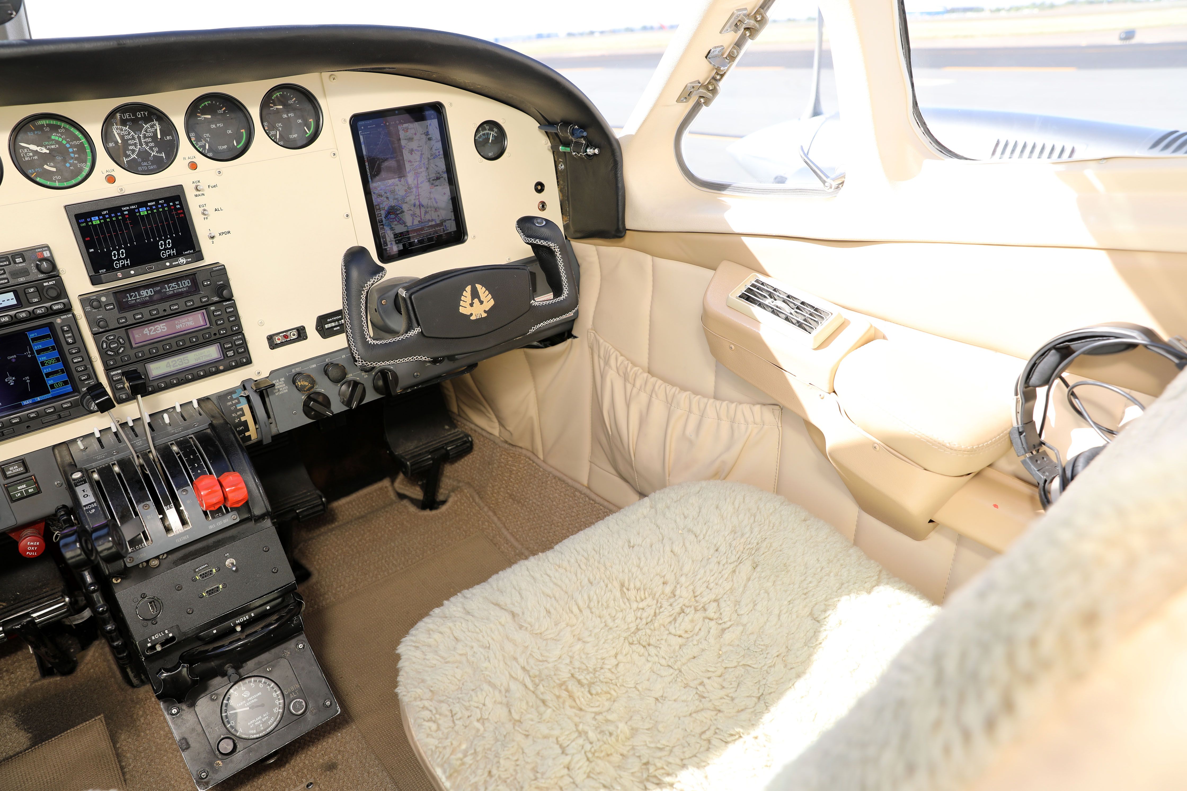 Audio Panel: Garmin GMA 345 Bluetooth audio panel with 3LMB EFIS: Garmin G600 TXi electronic flight information system EFI: Garmin GI 275 ADAHRS standby ADI GPS/Nav/Com: Garmin GNS 530W WAAS GPS/Nav/Com Nav/Com: Garmin GNC 255A Nav/Com iPad Mount: Guardian Avionics Autopilot/FD: S-Tec 3100 autopilot/flight director system with trim module, altitude hold, preselect, alerter, yaw damper and FIKI option kit Transponder #1: Garmin GTX 345 ADS-B In/Out Transponder #2: Garmin GTX 330ES Mode ES extended squitter transponder Encoding Alt.: Aerosonic encoding altimeter Engine Analyzer: JPI EDM 790 color engine analyzer ELT: ACK ELT with panel mounted switch and indicator ICS: GMA 345 with pilot and copilot Bose powered and standard jacks Hour Meter: Datcon recording hour meter Aux power: Auxiliary lighter port with two USB power ports Pilot control yoke with PTT, electric trim, go around, CWS and map light switches Copilot control yoke PTT and map light switches |