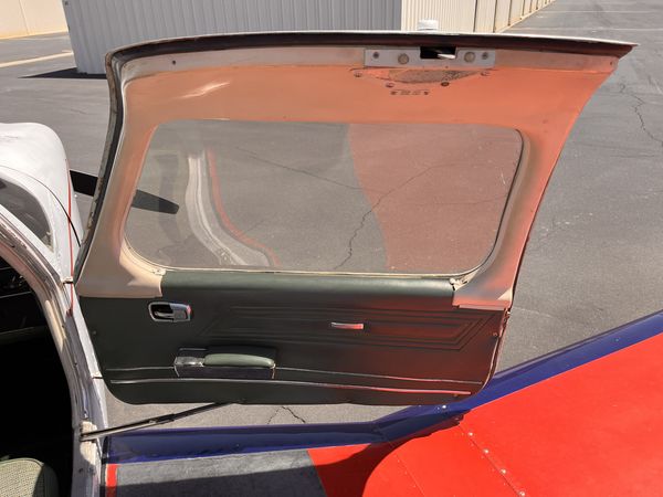 | Light green fabric and vinyl seats with matching carpet and side panels. Cream headliner. Overall rated 7 out of 10.. | |