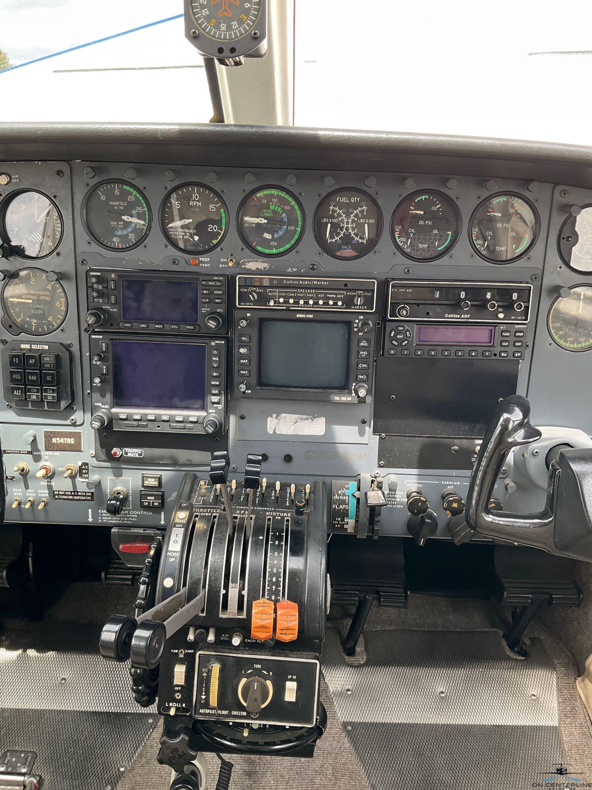 Garmin GNS-430 Garmin GNS-530 Garmin 345 Transponder w/ADS-B In/Out Collins AMR-350 TSO Audio/3 Light MB Collins 650 ADF Bendix/King RDR-2000 Weather Radar HSI + 2nd VOR/LOC/GS Co-Pilot Instruments Cessna Autopilot Davtron Clock |