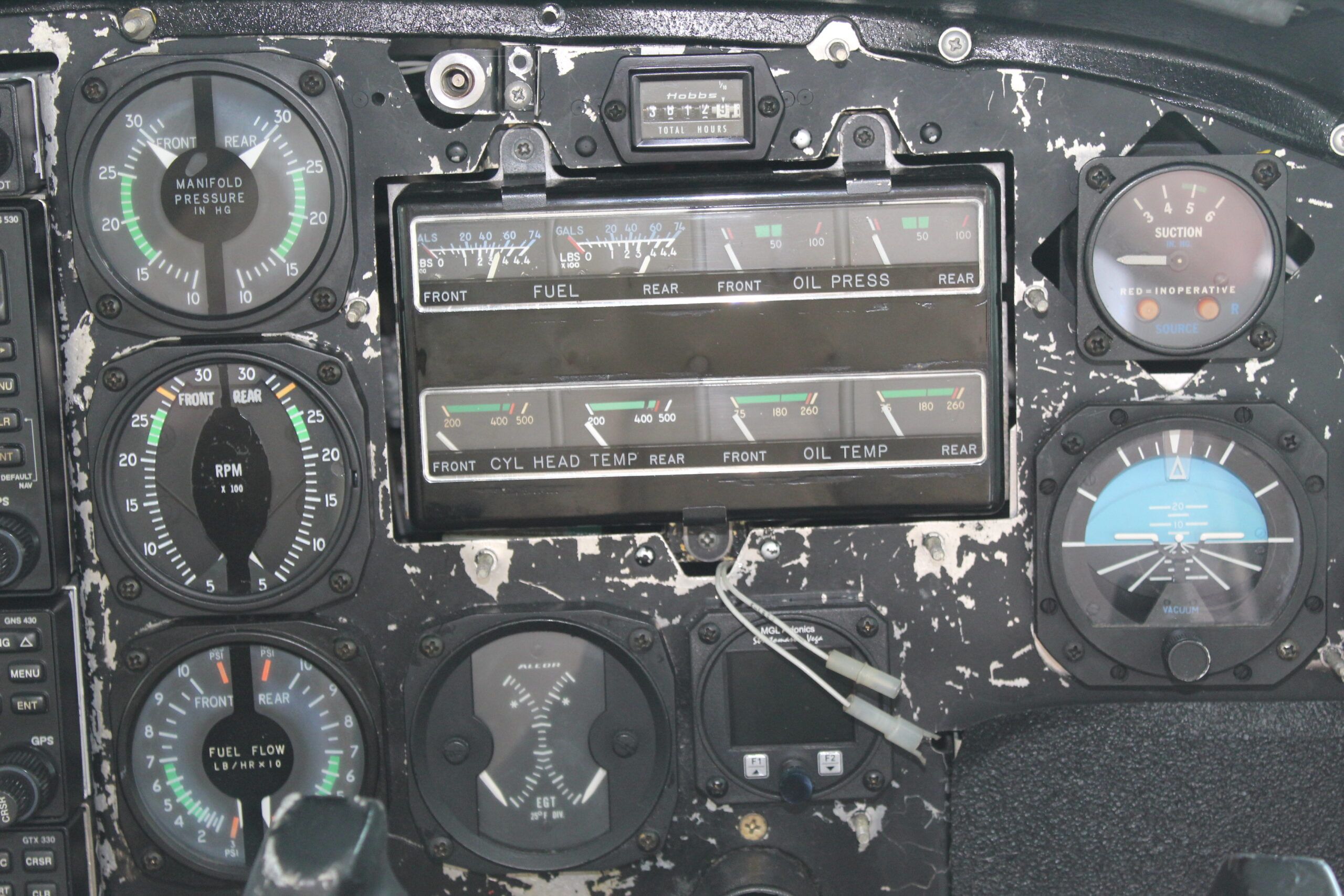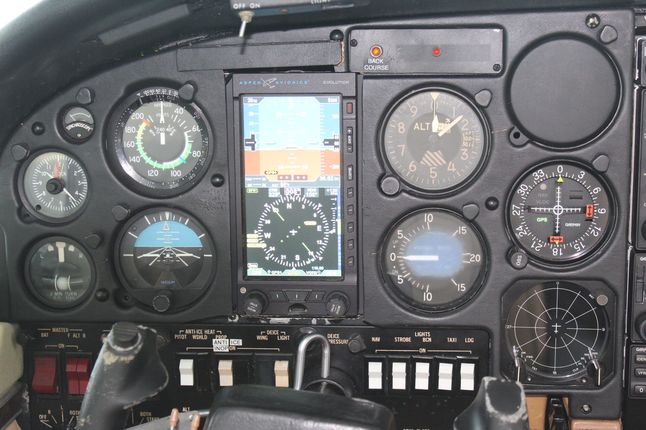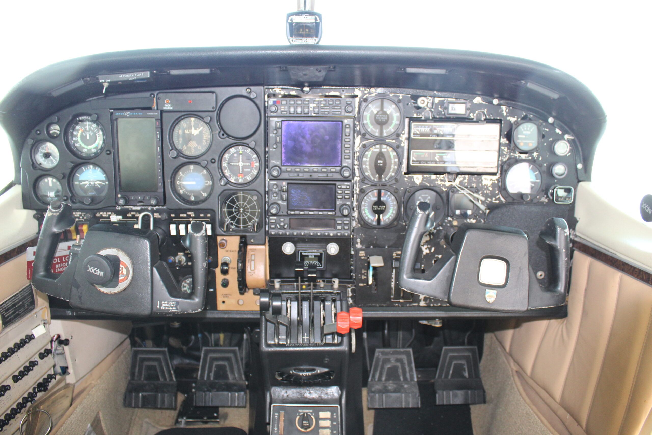 Avionics Master Switch Aspen Evolution Primary Flight Display Garmin GMA 340 Audio Panel with Integrated Intercom Garmin GNS 530 WAAS Garmin GNS 430 WAAS Garmin GPS/VOR NAV1(Aspen Displayed) Garmin VOR/Glideslope NAV 2 (Displaying 430WAAS) Garmin GTX 330 Transponder Dual Standby Attitude Indicators (Left and Right Sides) ADS-B Garmin IN/OUT Cessna Sperry 400B Autopilot Hobbs Meter Goodricj WX-10 Stormscope Elt Magnetic Compass Electric Cowl Flaps Prop Anti-Ice (Inop) |