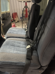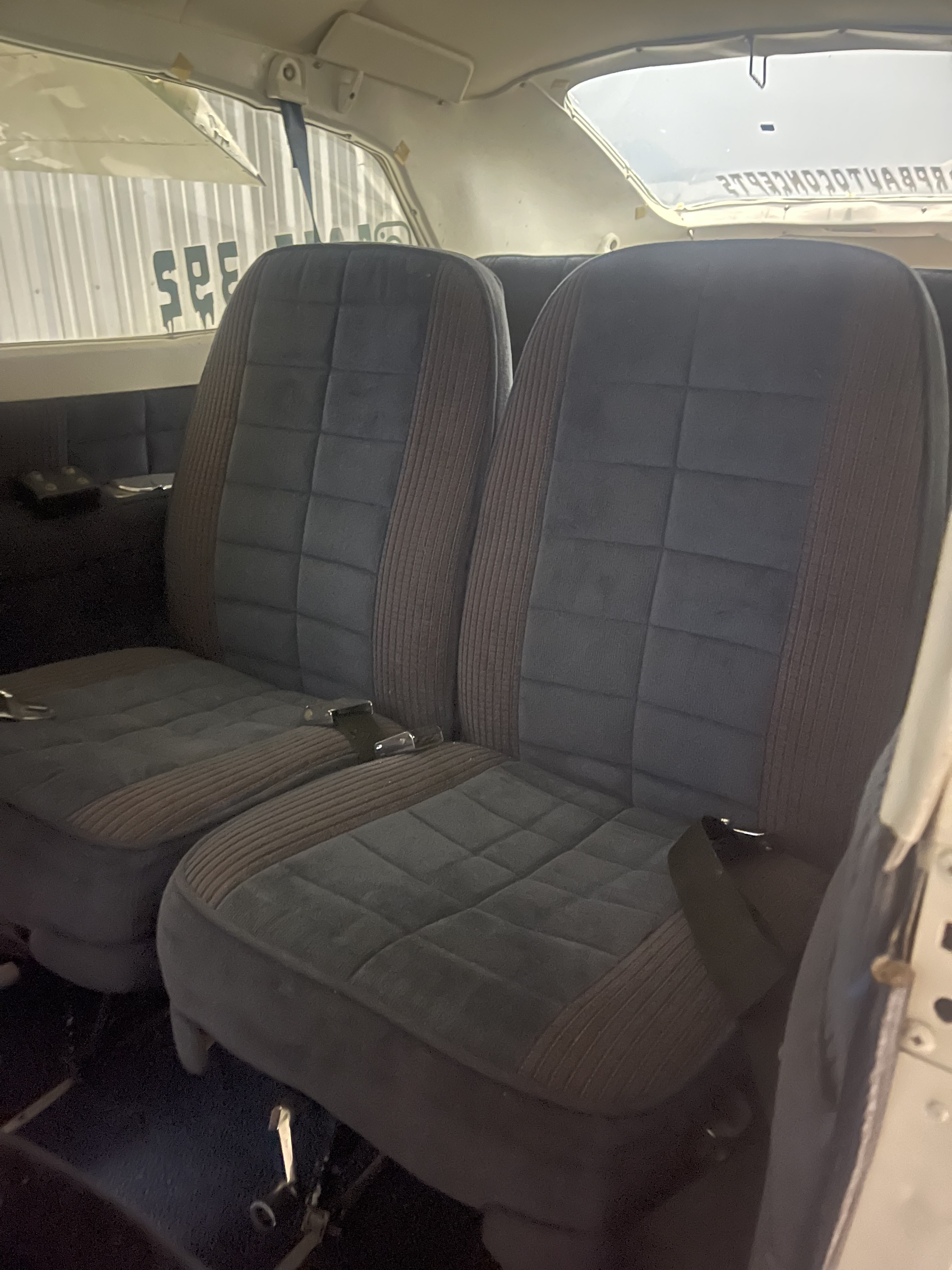 Dark Blue crushed velvet seats and side panels, white overhead panel and new black carpet Very Good Condition |