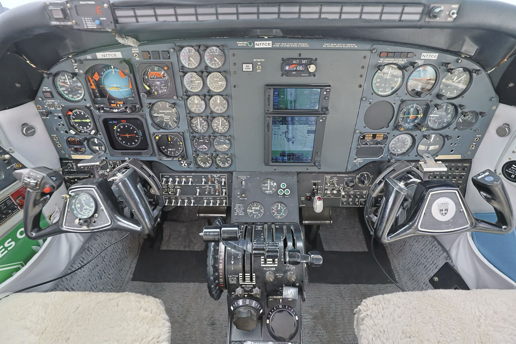 Avionics Suite: Upgraded Panel Garmin GTN 750 – IFR WAAS Navigator Garmin GTN 650 – Secondary WAAS GPS/NAV/COM WAAS & LPV Approach Capability Legacy Factory Avionics (Retained) Original King Air E90 six-pack instrumentation including: Attitude Indicator Airspeed Indicator Altimeter HSI / RMI VSI Sperry SP-200 Autopilot Standard King Air E90 Equipment Dual Vacuum Pumps Dual Alternators Eectrically heated Windows Pneumatic De-Ice Boots (wing, tail, gear) Heated Props Heated Pitot & Stall Warning Standby Gyro Pressurization System Environmental System (heating/airflow) 28V Electrical System Fire Extinguishing System Dual Fuel Controls Overwing Emergency Exits |