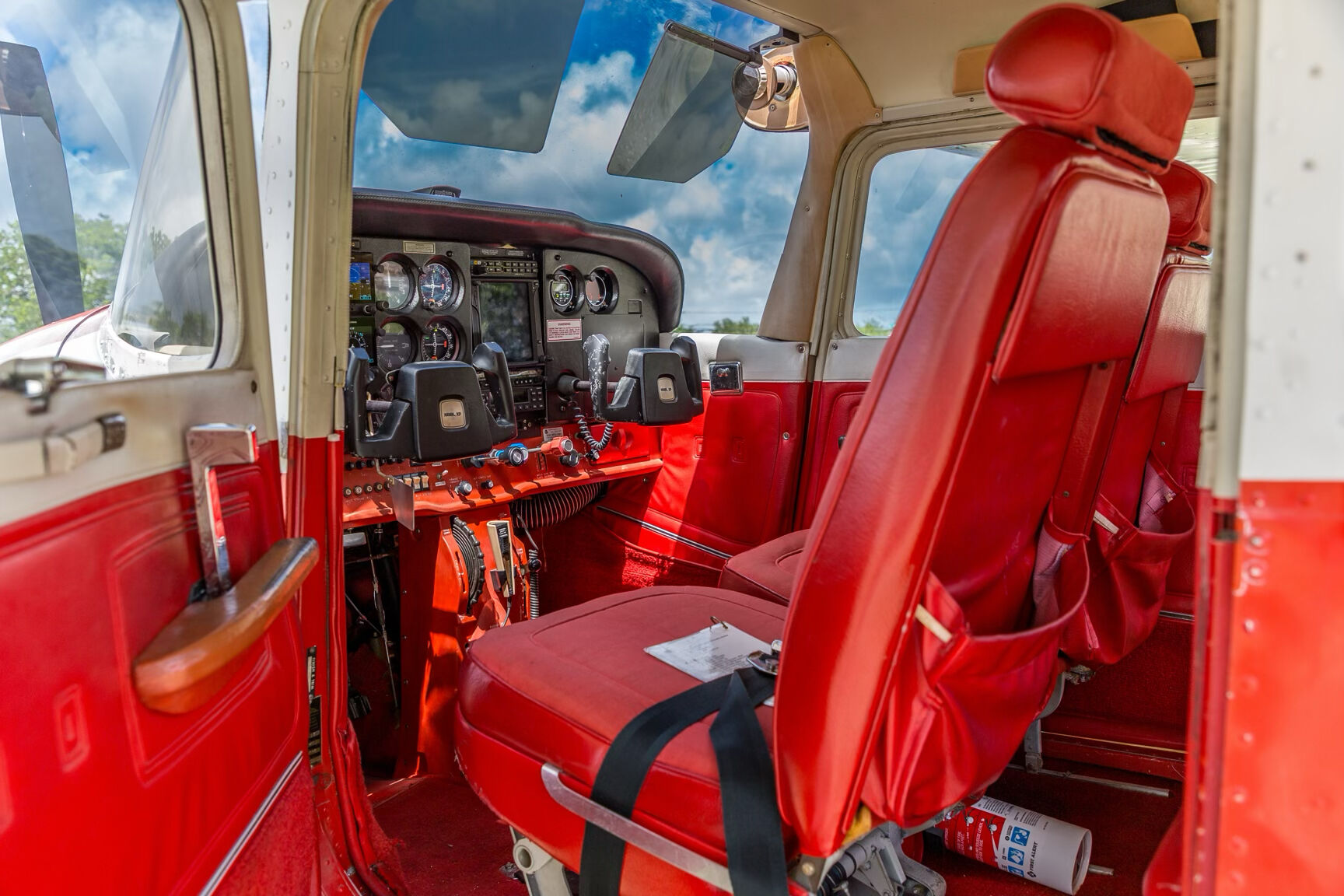 Complete analog backup flight instruments Manifold pressure & tachometer Dual toe brakes Electric flaps Cabin heat & overhead ventilation Cigarette lighter/power outlet Baggage compartment – 120 lb capacity Rosen sun visors Pitot heat LED landing/taxi lights Beacon & strobe lights Hobbs & hour meter Static & alternate static source 50 gallons usable (standard tanks) Optional 66-gallon long-range tanks installed |