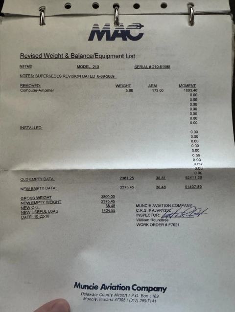 Inspection Status: November Annual 1424 Useful Load |