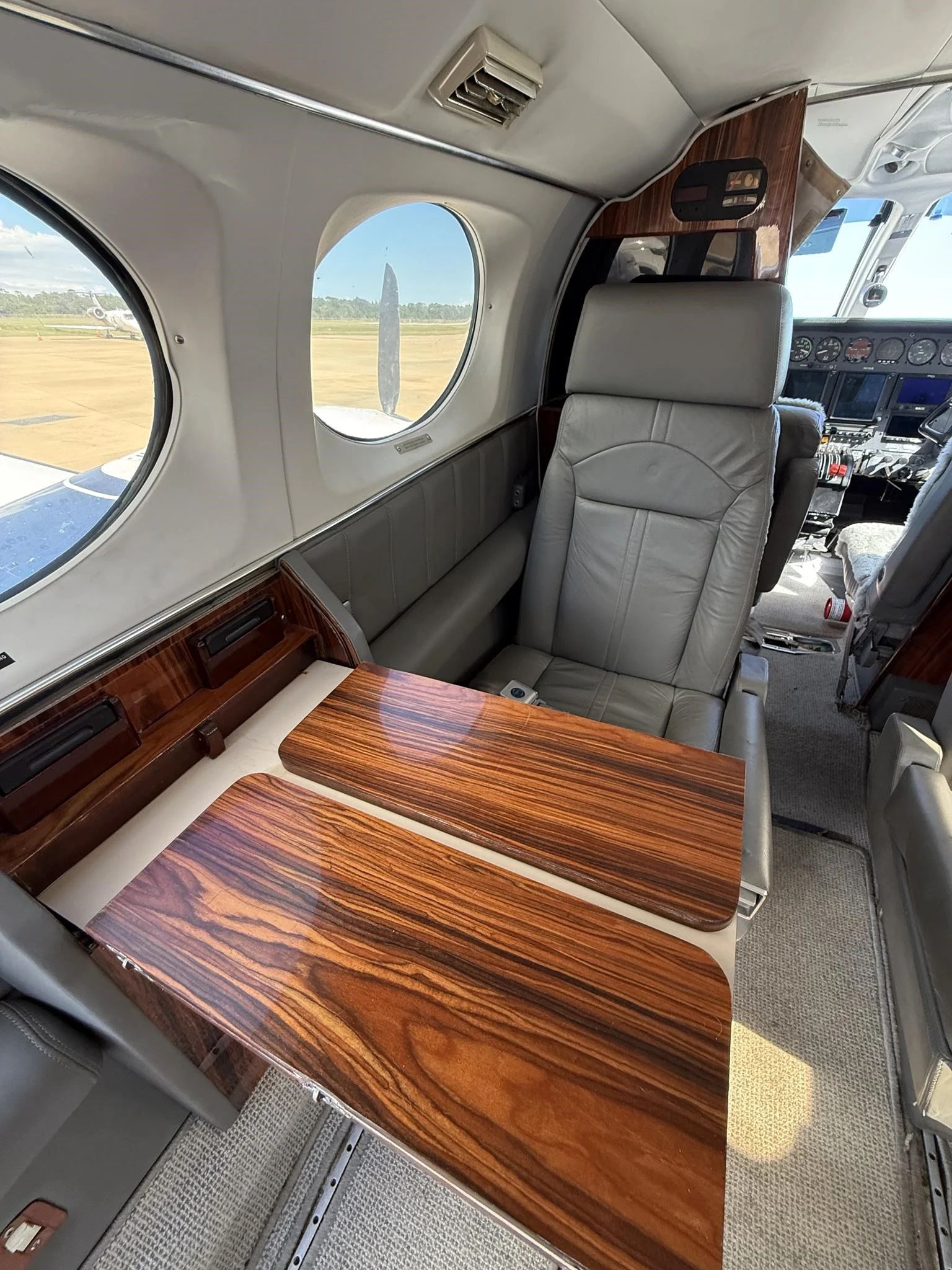 Number of Seats - 7 Lavatory - Yes Interior Notes Custom Leather Interior with 421 Style seats (folding armrests) Gray Leather seats with matching side panels, off-white headliner, High Gloss dividers, cabinets and writing tables. USB Ports at seats for charging. |
