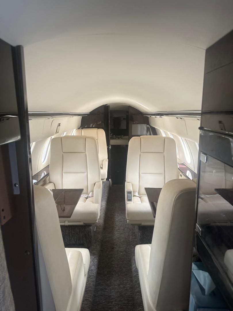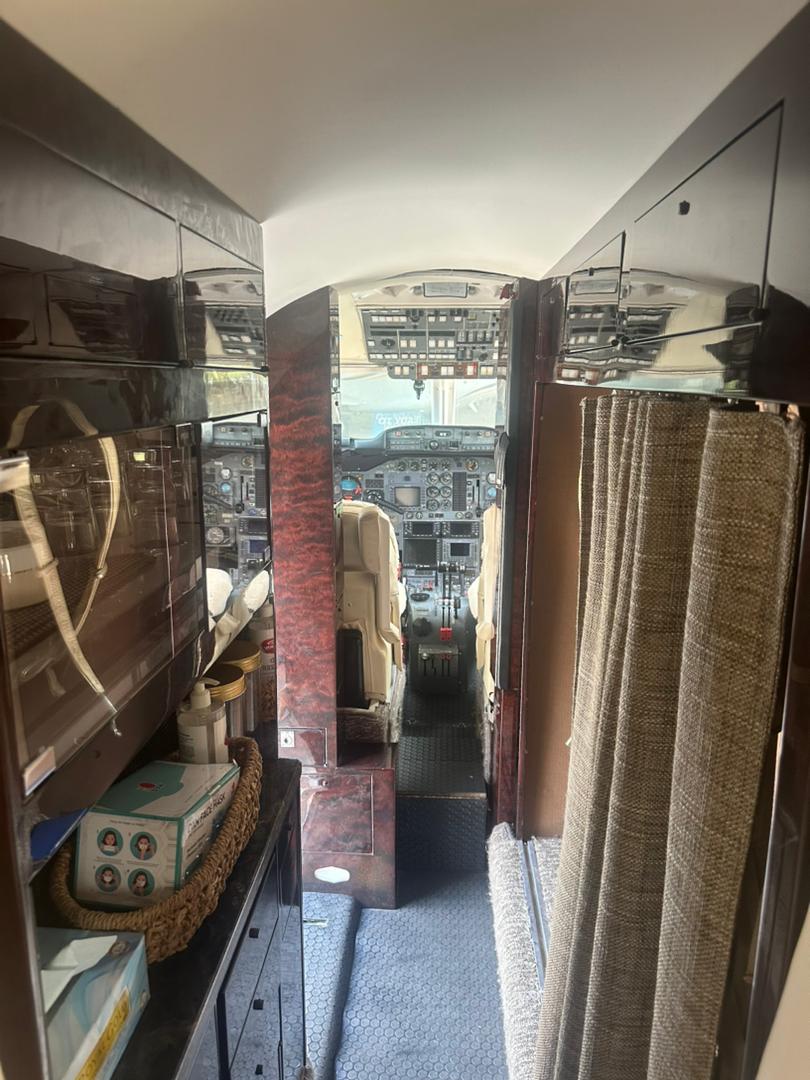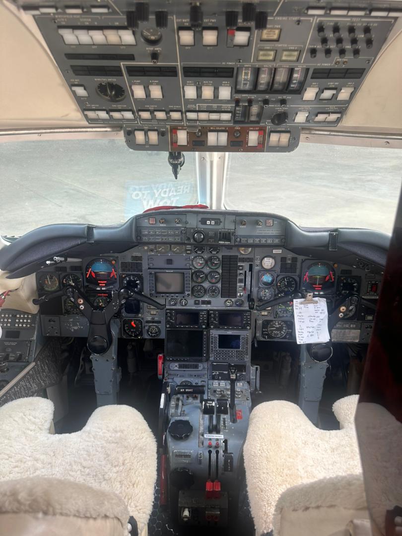 New eight (8) passenger interior. Forward club with aft divan, forward heated and pressurised baggage space, forward left hand galley with ice chest. Aft lavatory with sink, corian countertops and mirror. |