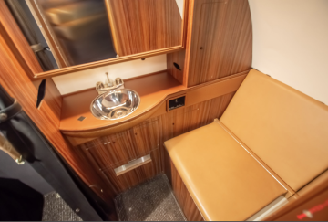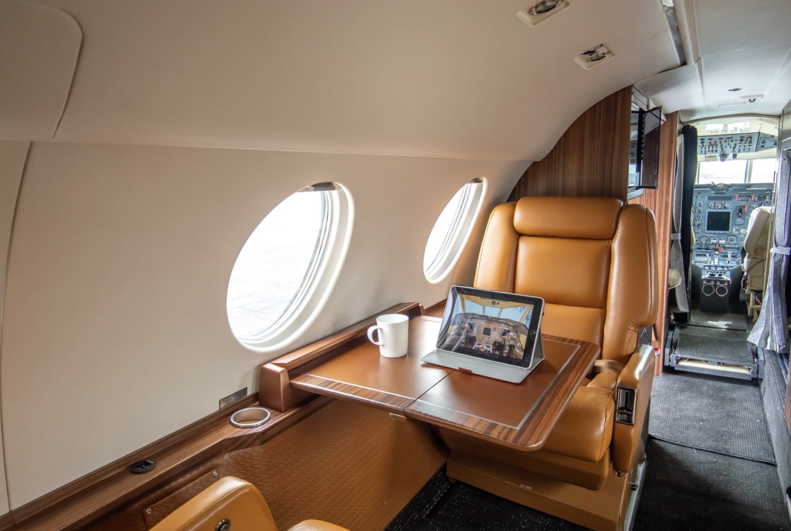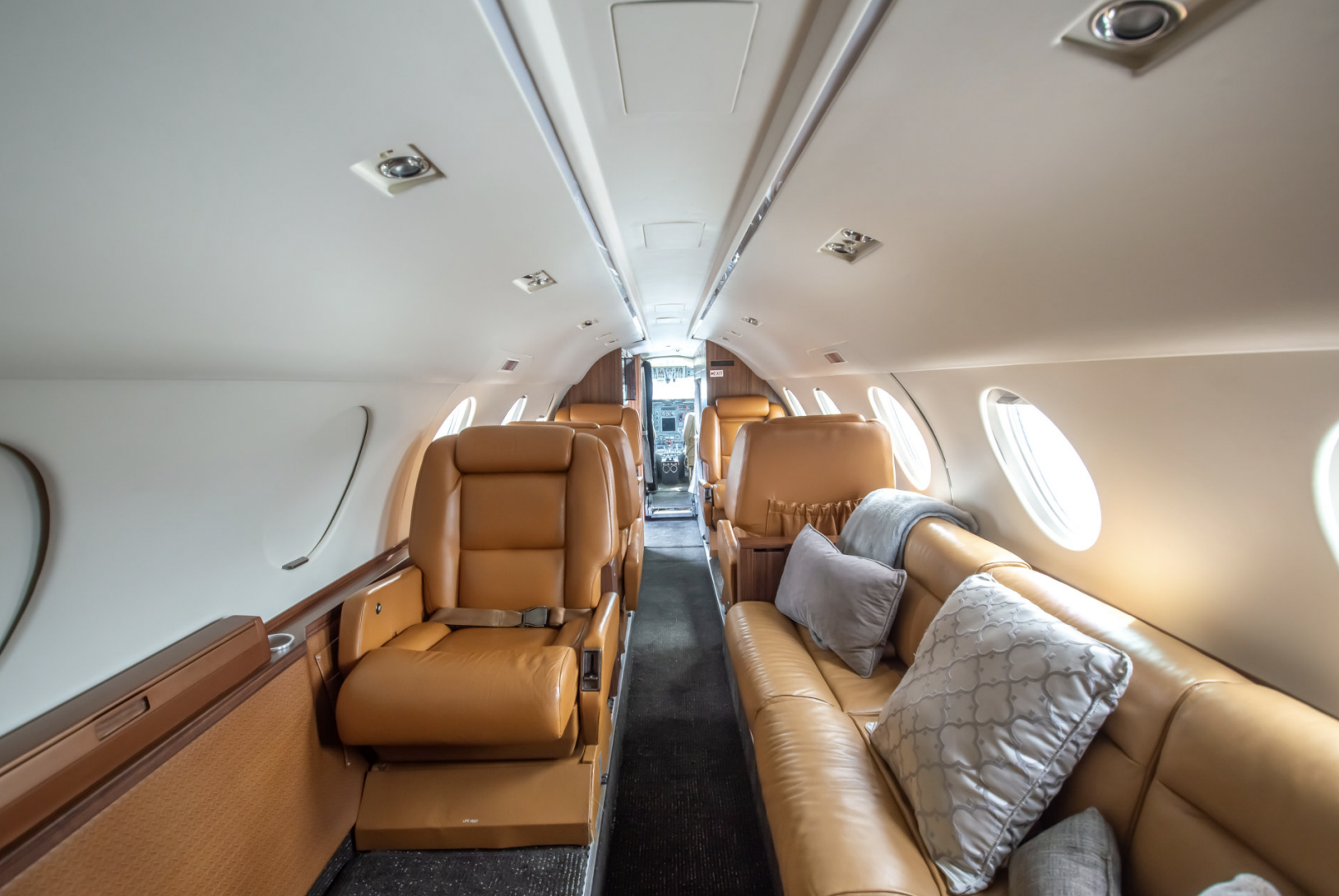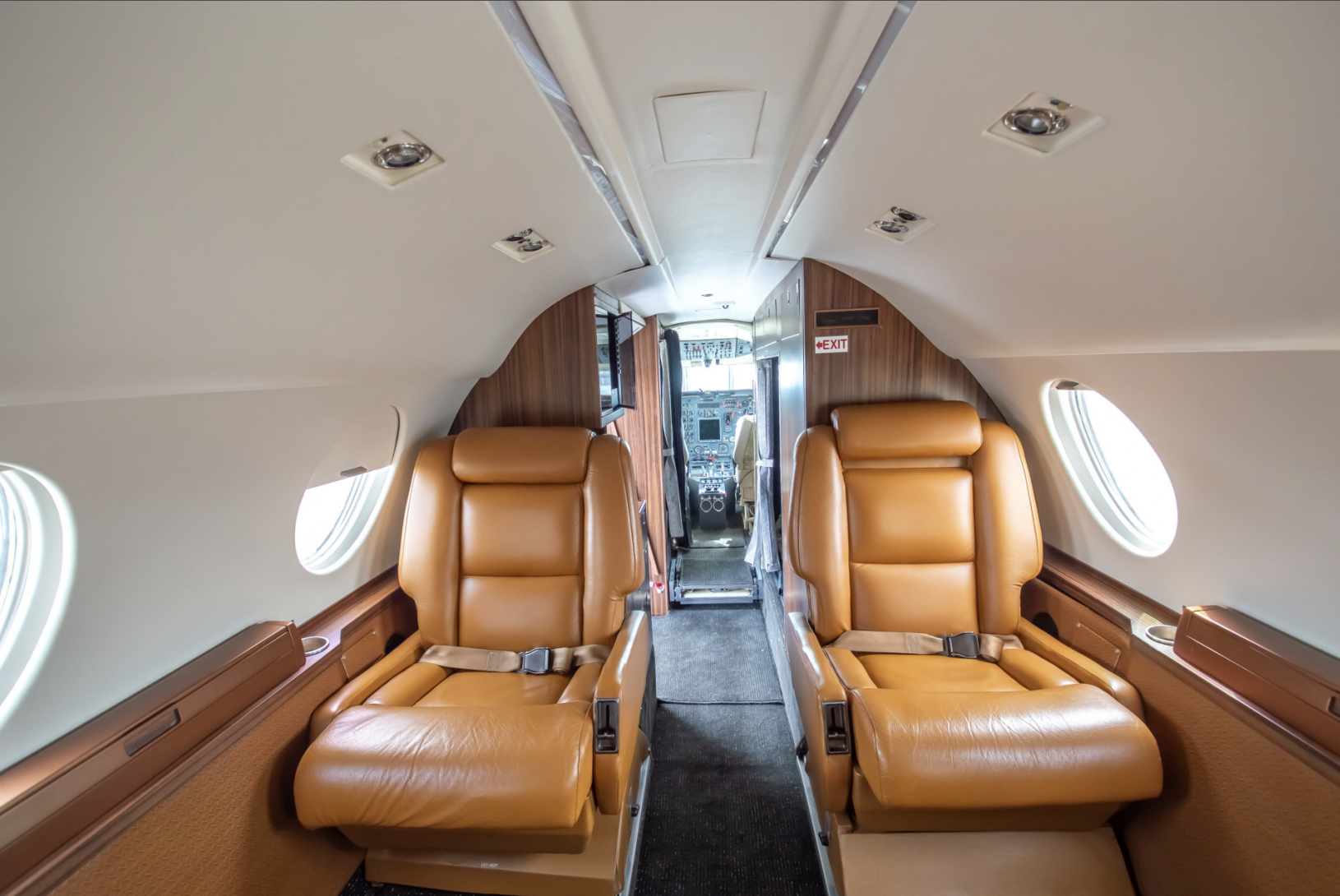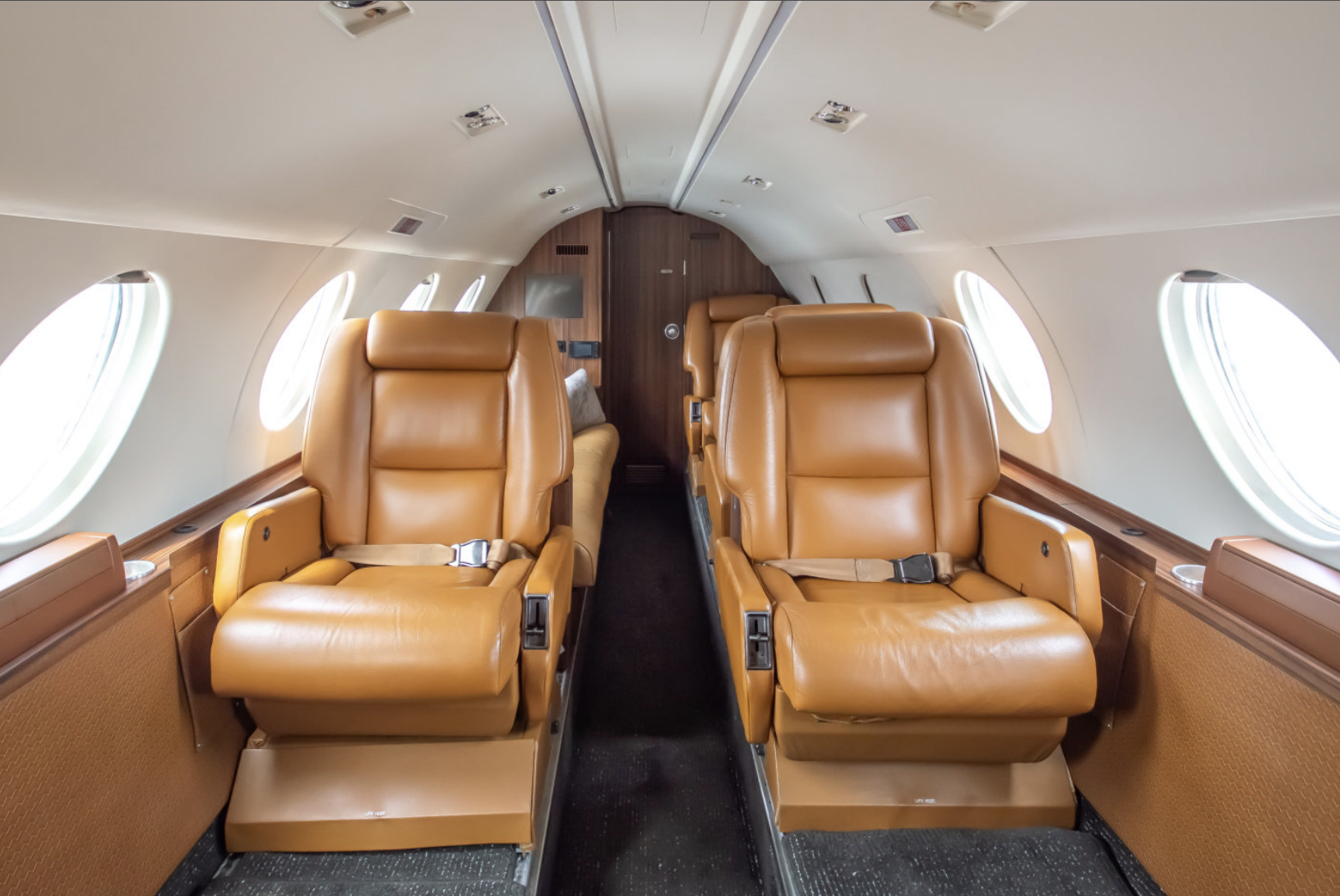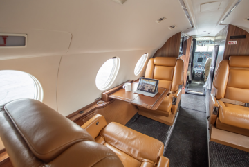 Refurbished 2020. New Wood and all soft goods, headliner, side panels, carpet etc. Nine (9) passenger configuration includes: forward four place club, two single chairs opposite 3 place divan in the aft. Belted jump seat (#10 Pax). All seating covered in leather. Expanded aft baggage area plus standard forward baggage. Forward Galley. Wooden drink rails. XM radio. DVD player, mid cabin, aft cabin refreshment bar, Airshow. |