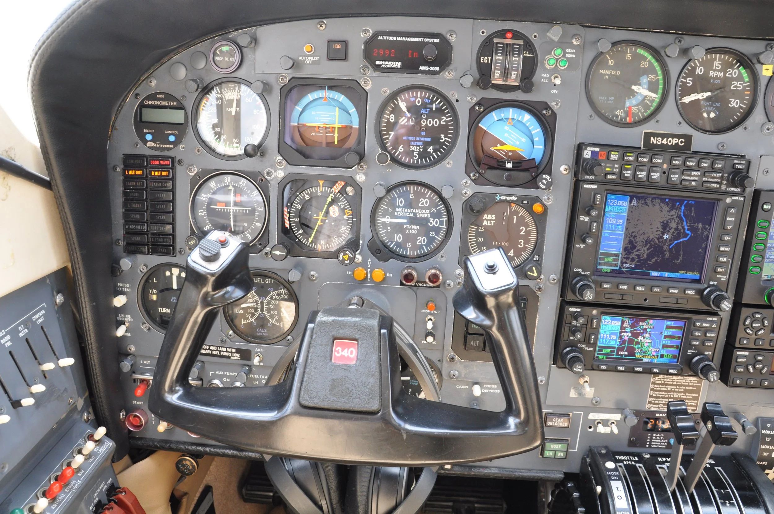 Garmin 340 Audio Panel Garmin 530W Com/Nav/Map/GPS – Displays on HSI Garmin 430W Com/Nav/Map/GPS – Displays on CDI w/GS Avidyne EX-500 MFD – Displays Color Radar Garmin Flightstream 210 Sperry AA 100 Radar Altimeter WX-10A Stormscope Bendix RDR 160 Radar-Displays on EX500 Shadin AMS-2000 Altitude Alerter Cessna 400B Autopilot/Flt. Director w/3” FDI, Yaw Damper Jack for Handheld Radio External Antenna |