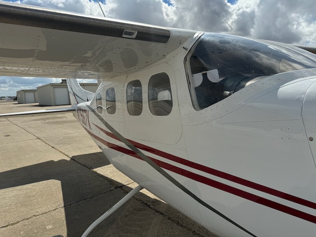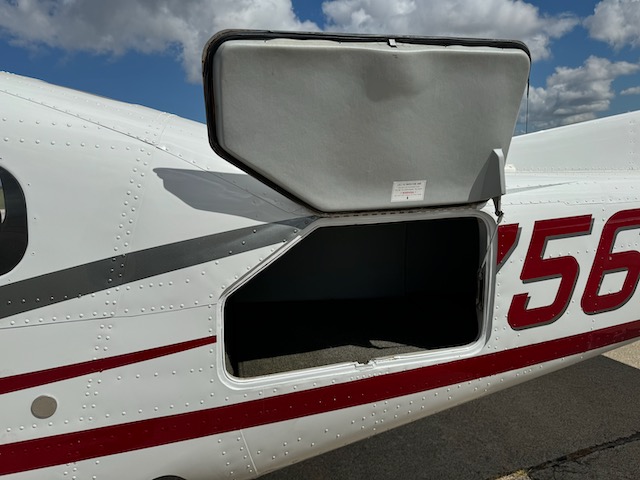 | Exterior: Paint by Murmer Aircraft Services in October 2019 in Jet Glo Matterhorn White (#840103), Acry Glo Deep Red (#00550) and Acry Glo Medium Silver (#10568) in excellent condition. | |