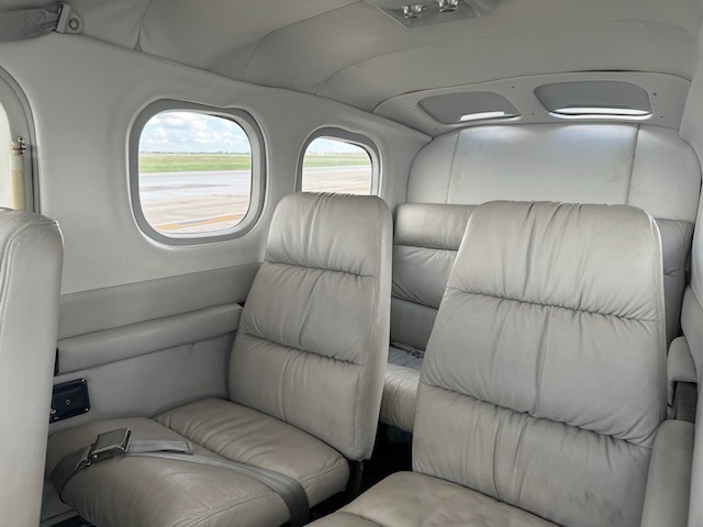 | Interior: Fully articulating and vertically adjustable pilot seat with shoulder harnesses in Tan Leather and coordinating Side Panels and Taupe Carpet. | |