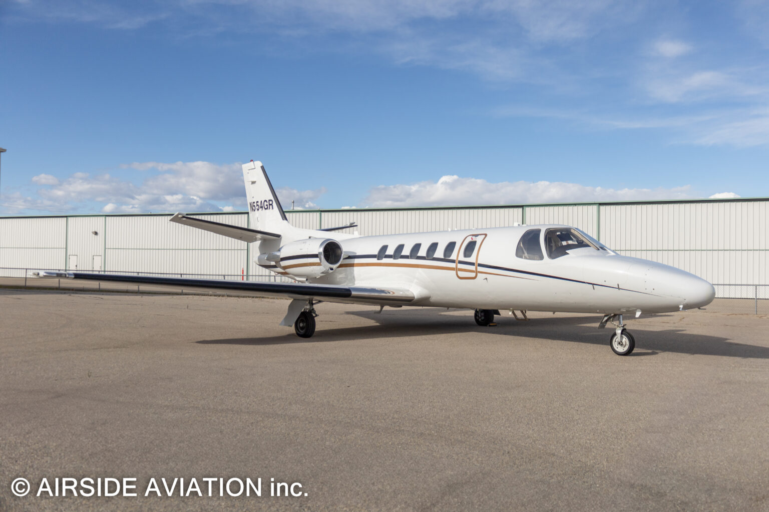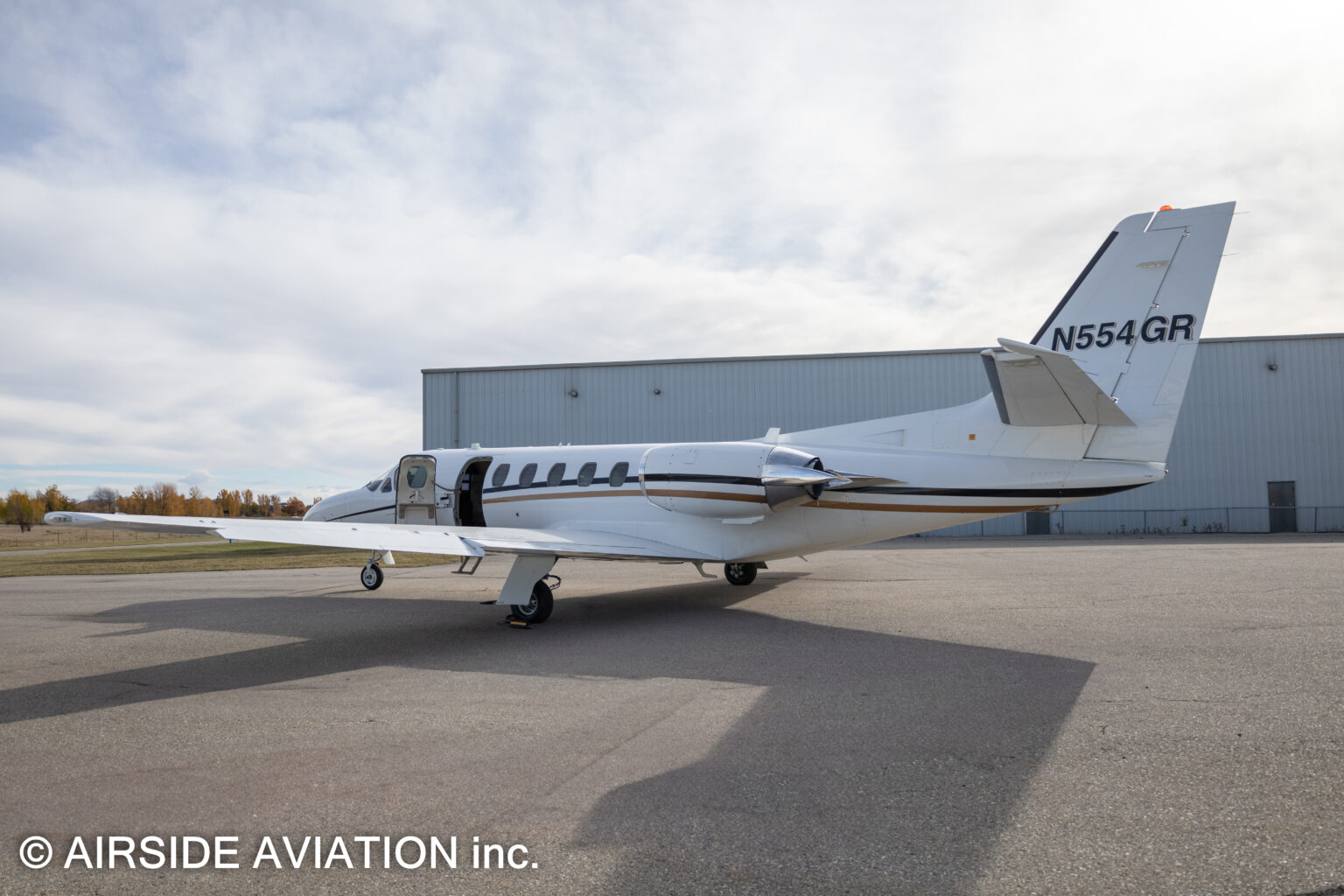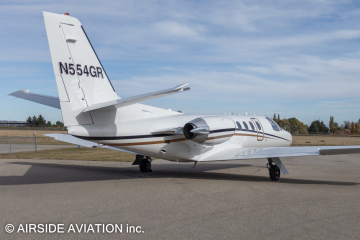 | This 1981 Citation II is currently undergoing Phase 1-5 inspection. Experience its exceptional performance with modern avionics, including Avidyne EX5000, dual GTN 750s, and Garmin G600. It is a 7-passenger executive interior with a belted, flushing aft lavatory. Call Airside for more information! | |