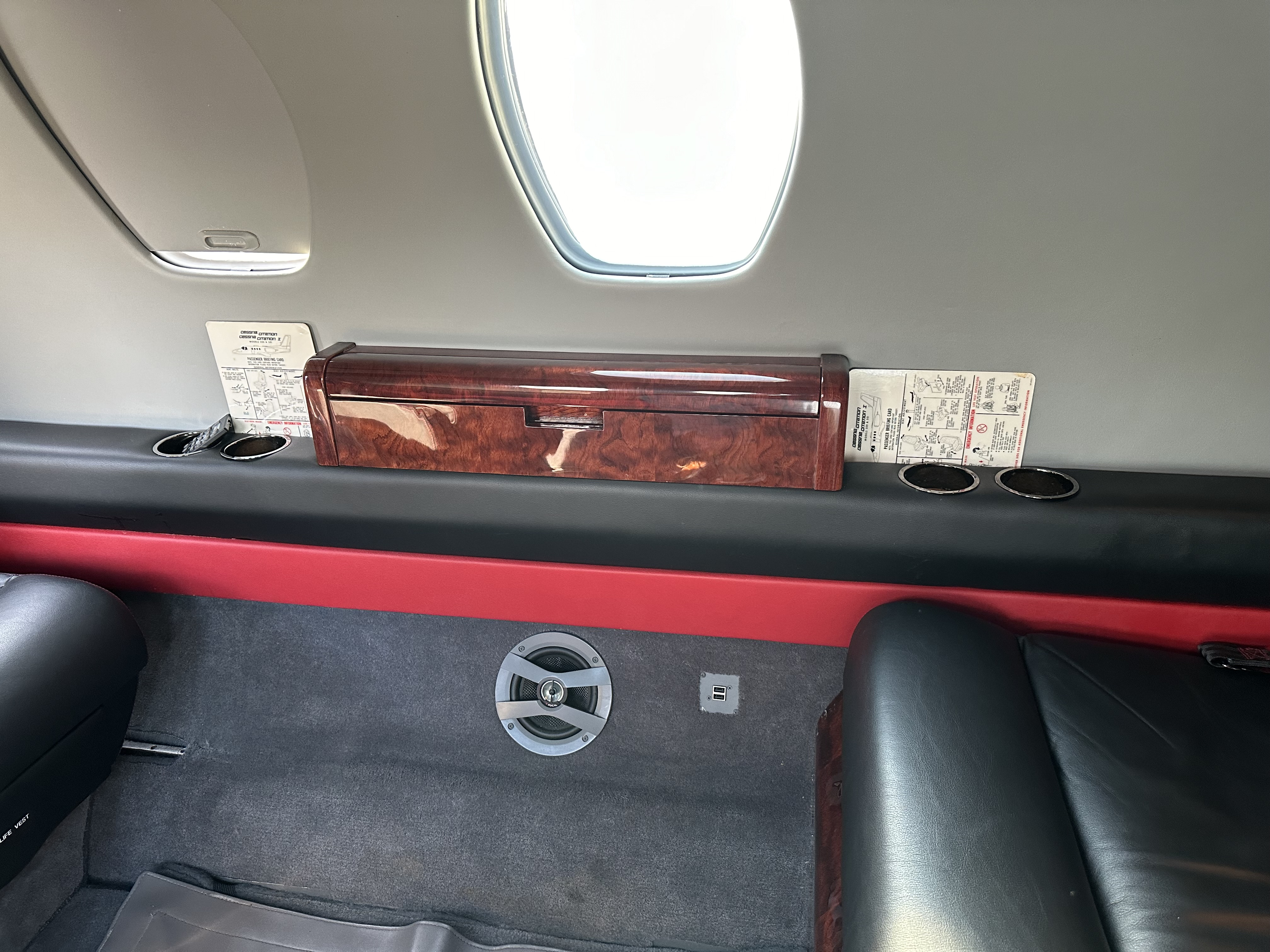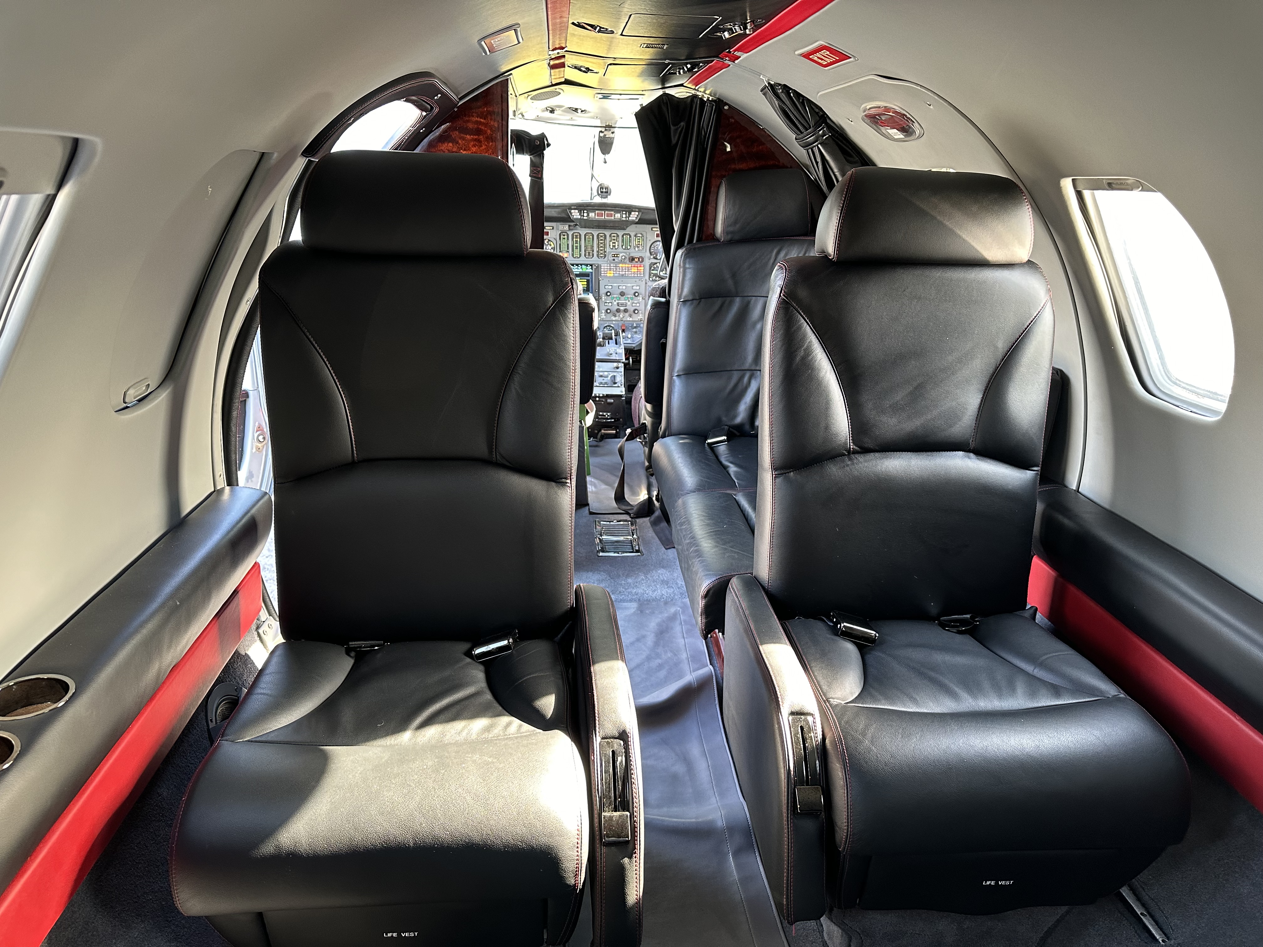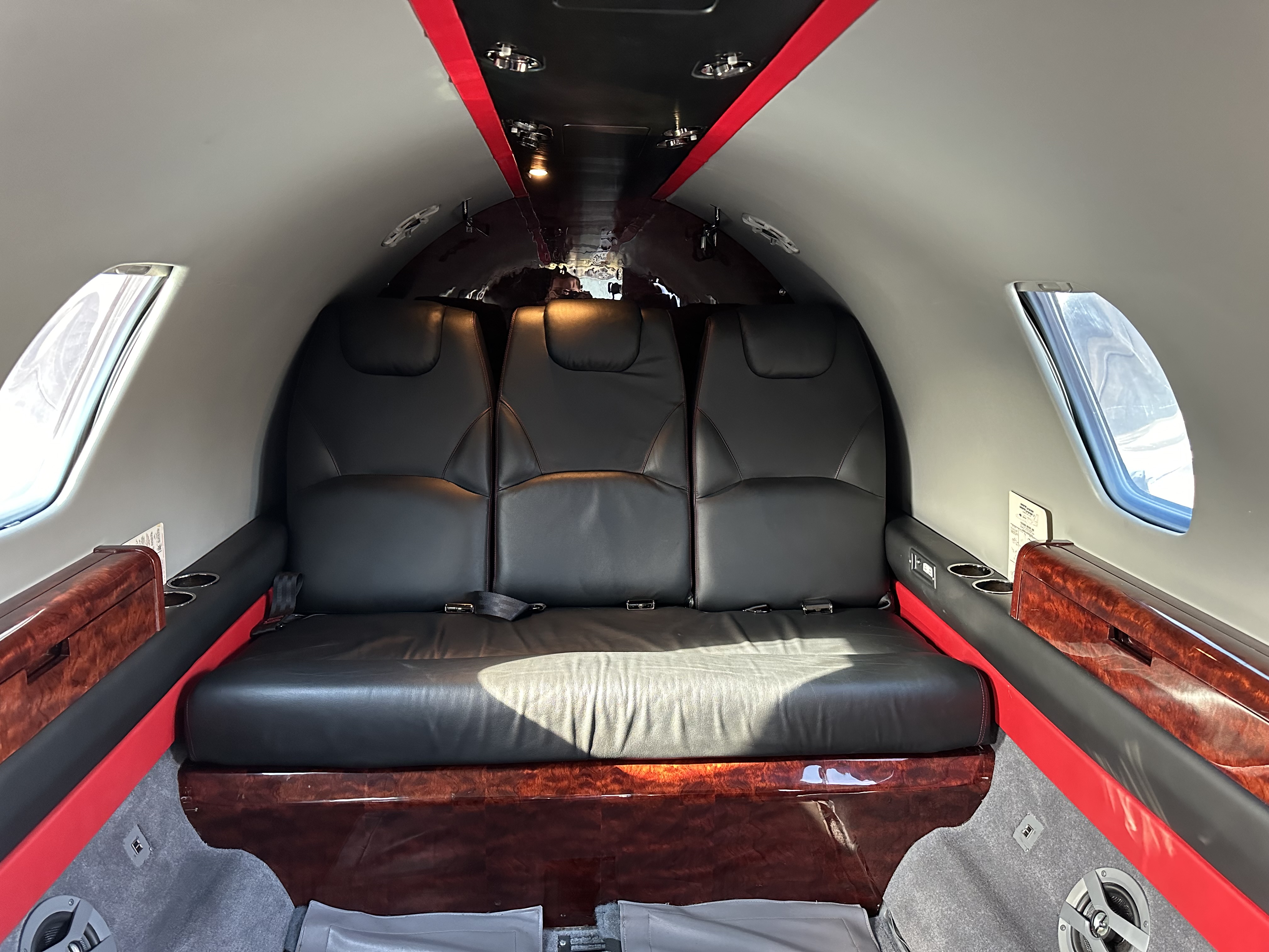 | Black Leather Seats, Gray Carpet, Red and Black Accents. Complete Interior Refurbish March 2017 Performed by Rose Aircraft Services | |
