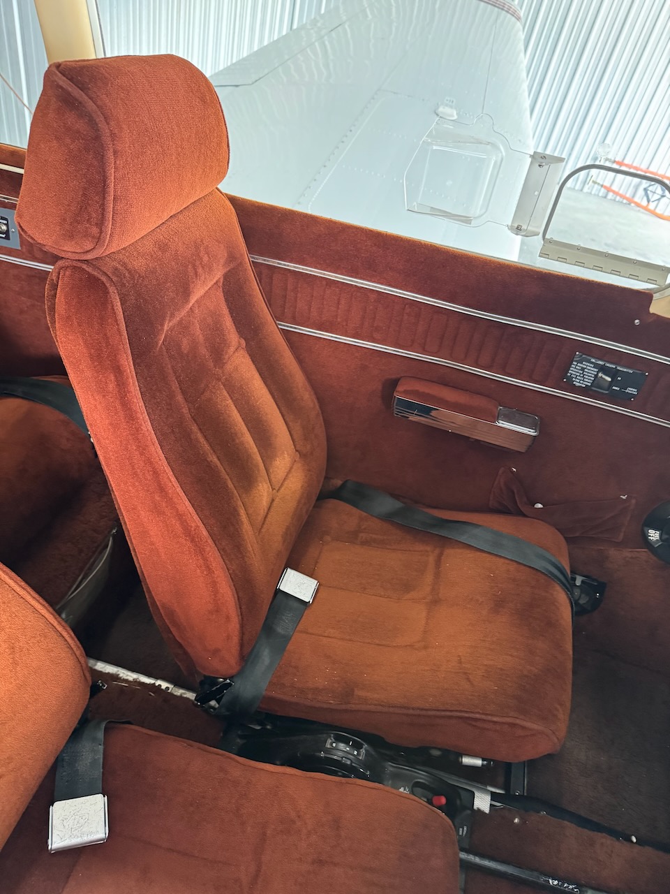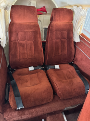 Original Interior with Crushed Velour Seats and coordinating side panels and carpet in Rust. Pilot and Co-Pilot Vertical Adjusting Seats Pilot and Co-Pilot Shoulder Harnesses |