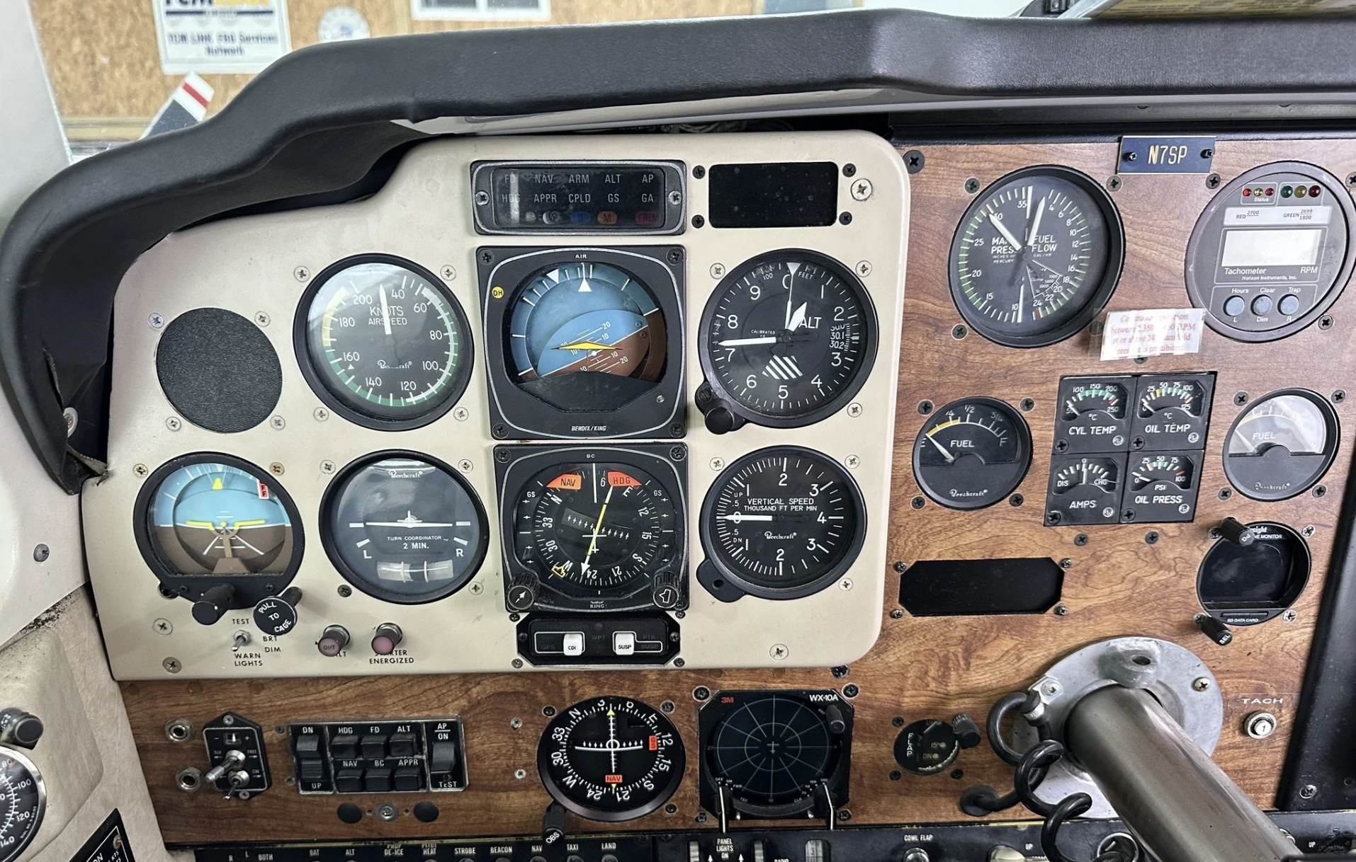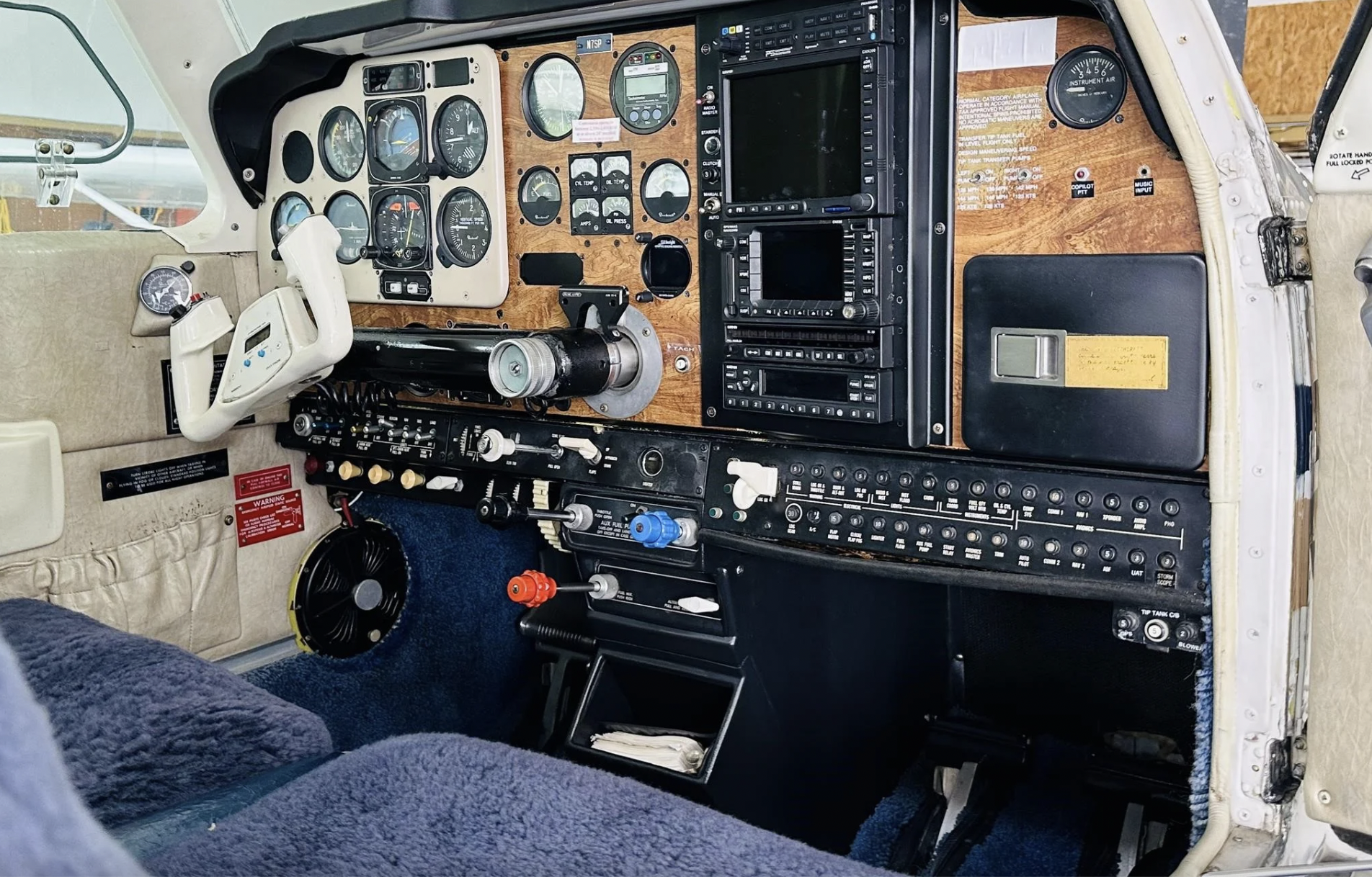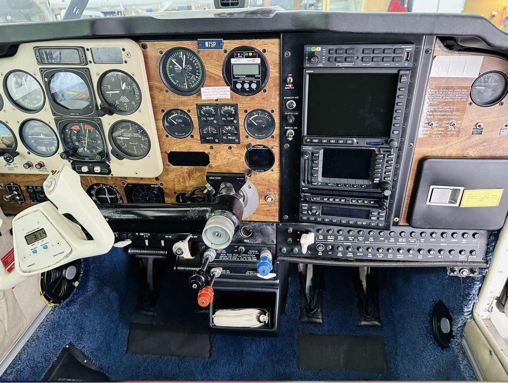 CNX-80 GPS/Comm Garmin SL-30 Comm PS Eng PMA-8000G Audio Panel Garmin 327 with ADSB Out GMX-200 MFD King KFC-200 Autopilot King 55 HSI WX-10A Stormscope Intercom |