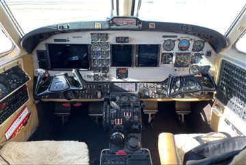 Cockpit: ADS-B Out, ADS-B In, Garmin Synthetic Vision Technology, WAAS/LPV, Mid-Continent MD302 standby attitude module, Garmin GMA-35C remote-mounted audio panel w/LEMO plugs, Garmin GDL-69A XM weather Modification: Hartzell/Raisbeck 4-blade Quiet Turbofan props, ram air recovery, enhanced performance leading edges & dual aft body strakes, Butterfield flow-thru anti-ice kit Crew Accessories: Garmin FliteCharts Equipment: Electric de-ice windshield, prop reverse, prop sync & auto feather, engine fire detection system, radiant heat, Commuter Air Technology exhaust extractor kit, Cleveland wheels & brakes, brake de-ice system, Kydex ice shields, Concorde lead acid battery, dual door cables, dual A/C evaporators Lights: Strobes, recognition, tail flood, LED landing/taxi |