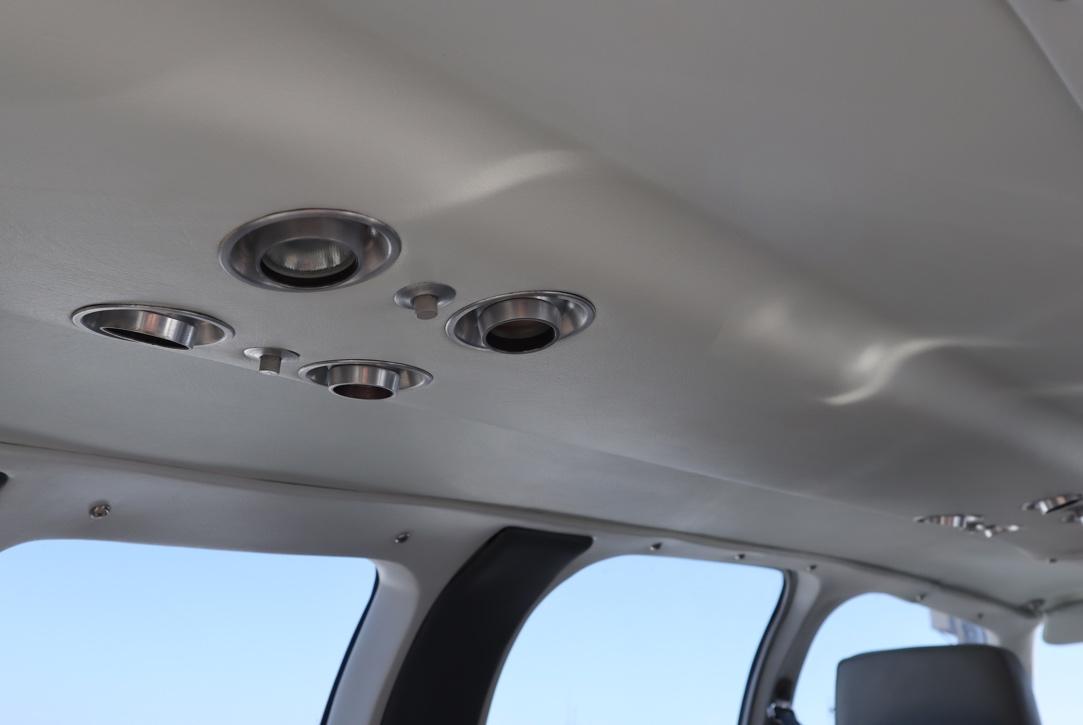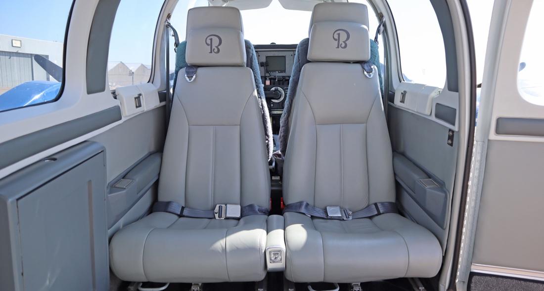 Six-Place Light Grey Leather Seats Dark Grey Carpeting Throughout Sheep Skin Covered Cockpit Seats Reupholstered in 2022 |