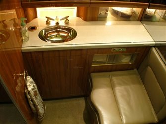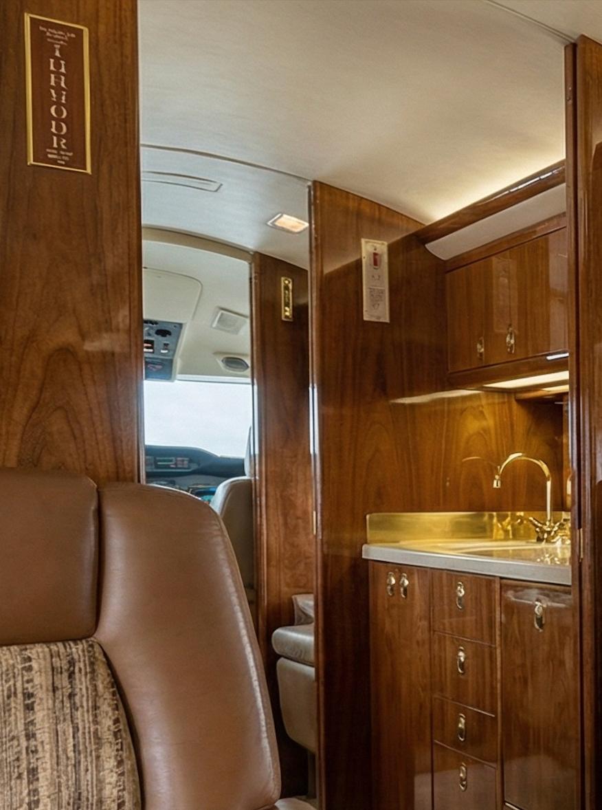 Configuration: Executive Fire Blocked: Yes Interior Color: Taupe Leather Interior Date: 9/2004 Passengers: 9 Interior Notes: Pininfarina interior scheme, Fwd Four(4) PI Club, Fwd Jumpseat, Aft RH Two(2) PI Club Opp Three(3) PI Divan, Galley w/ Coffeemaker / Microwave / Hot Oven / Sink, Aft Lav, High Gloss Zebrawood Cabinetry, Fwd Exec Tables, Aft Exec Table, Airshow 400, DVD/CD, Fwd/Aft LCD Monitors, 14.2" LCD Monitor, Baker Cabin Management System, Motorized Accordion Window Shades, Wash Accent Lighting, Aft Storage, Aft Lav |