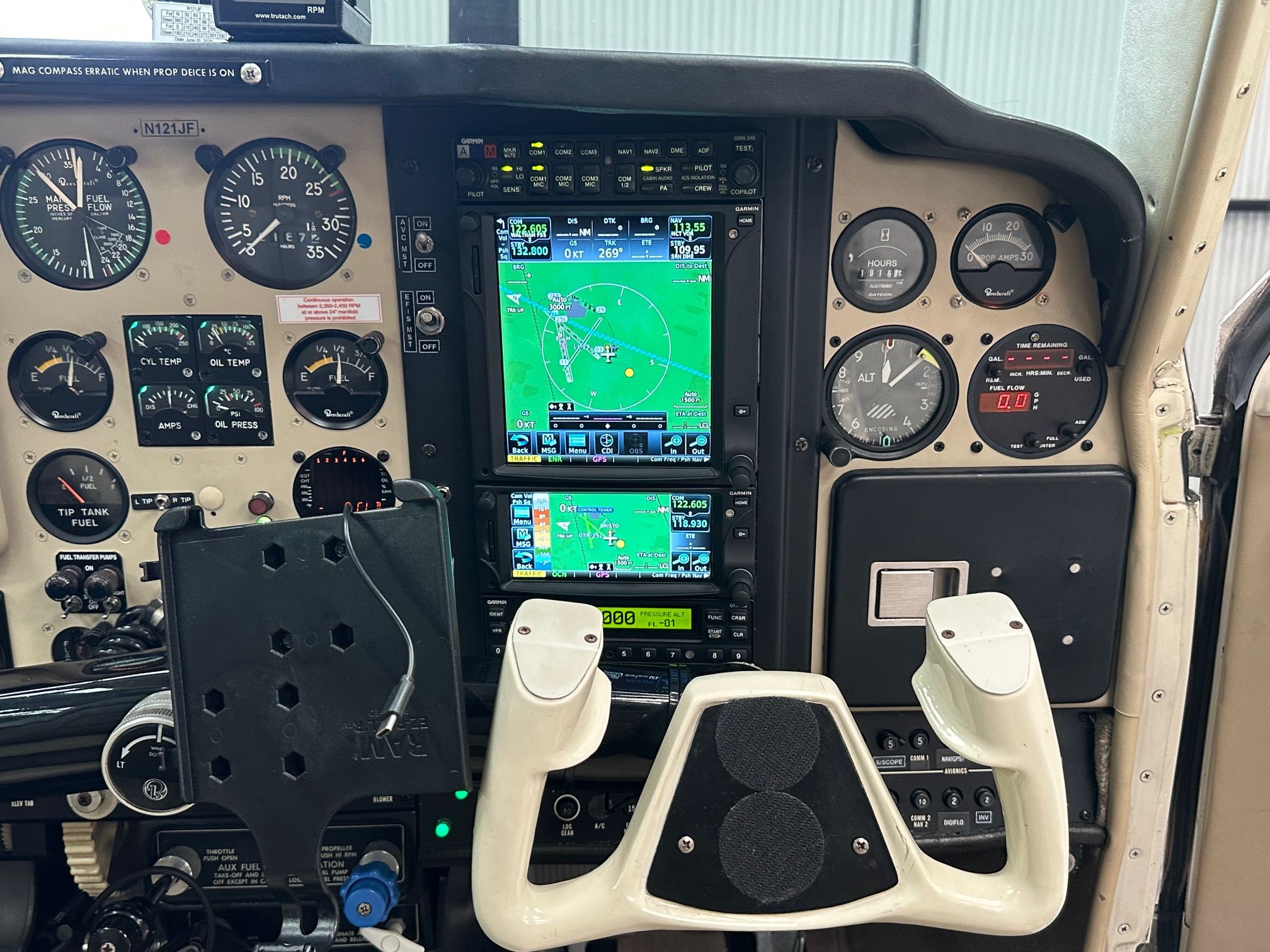 Garmin G500 PFD – Synthetic Vision Garmin GTN 750 GPS/NAV/COM/MFD Garmin GTN 650 GPS/NAV/COM/MFD Garmin GTX 330 Mode S Transponder Garmin GMA 340 Audio Panel Avidyne TAS 600 Traffic System Bendix/King KDI 572 DME King KFC 150 Autopilot with Yaw Damper EDM JPI 700 Engine Monitor Shadin Digital Fuel Flow Meter Mid Continent Artificial Horizon Artex ELT USB Power Socket |