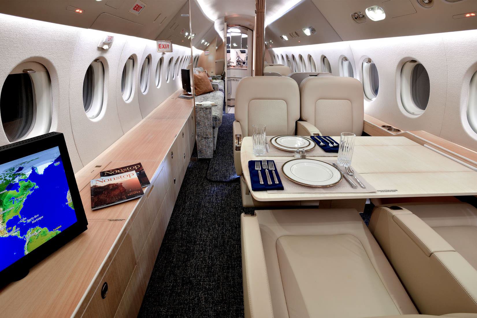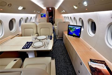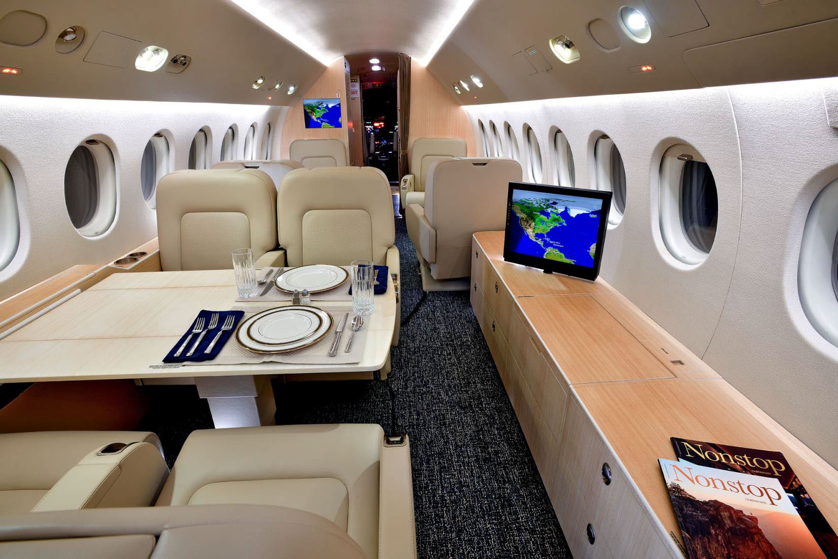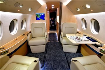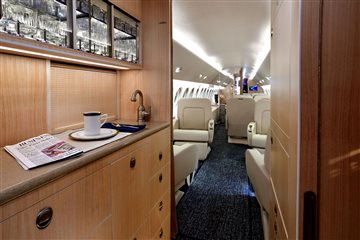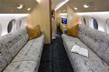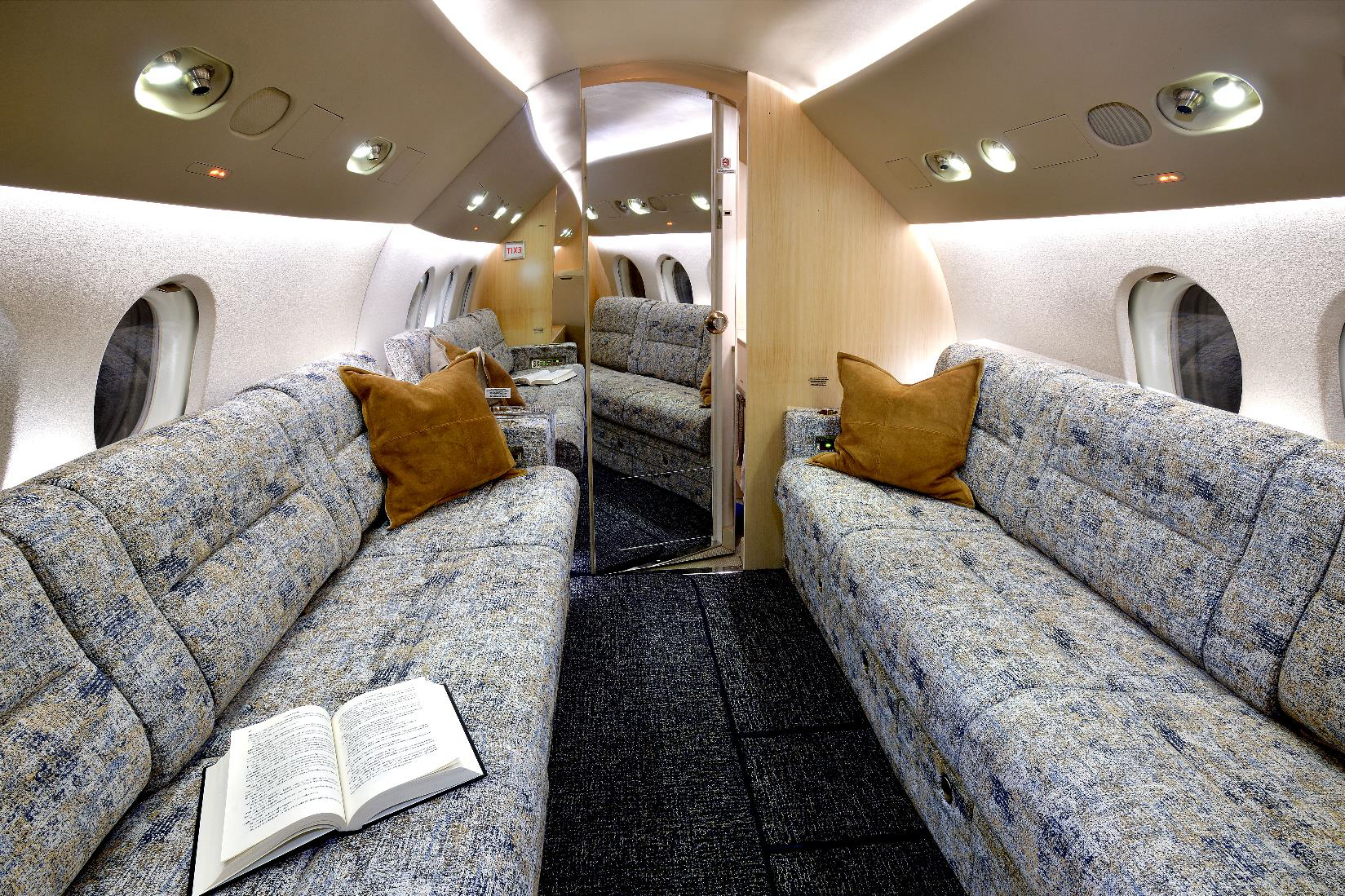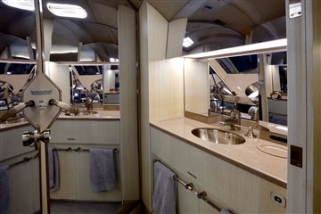 This beautiful eight (14) passenger interior features a four-place club arrangement in the forward cabin, followed by a four-place conference group in the mid cabin, and dual three-place divans in the aft cabin. The passenger seats, woodwork, lower and