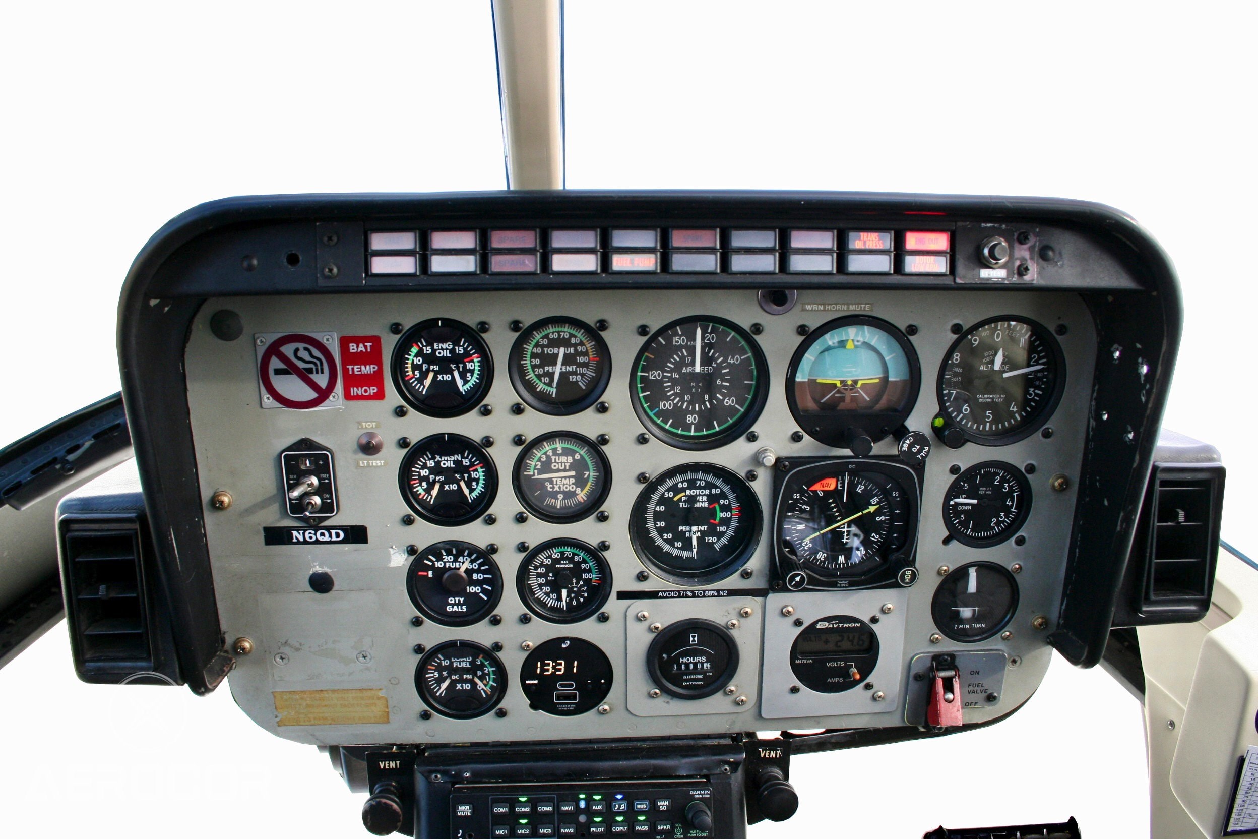 Avionics and Standard Features: L-3 Lynx Transponder/GPS/NGT 9000(d)+ STC# SR02471AK Garmin audio panel GMA-350H Bendix/King (2) VHF radio model KY-196A Bendix/King Flux Valve KMT-112 Bendix/King Remote Gyro KGS-105 Bendix/King HSI Indicator KI-525 Bendix/King Slaving unit KA-51B Antenna L Band NGT-9000(d)+ P/N AV-74 Rotor brake Fire extinguisher Particle separator Map reading light Cabin compartment lights Fresh air vent Mid-Continents digital clock/Usb chargers CH93 Antenna GPS NGT-9000(d)+ S67-1575-135 Antenna TCAS-1 Model NY-164 NGT-9000(d) Gill lead acid battery G-641S Davtron Volt/Amp meter P/N: M485VA-150 Vertical Speed Indicator Slip Skid Indicator Artificial Horizon Directional Gyro Electric chip detectors ENG, MGB, TGB |