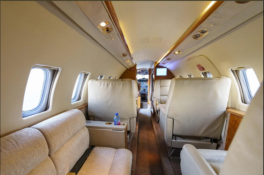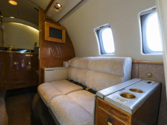 Configuration/PAX: Executive/7 passengers Seating: Fwd 4-place club, aft 2-place sidefacing divan opposite single fwd-facing seat. Refreshment: Fwd galley Lavatory: Aft lav |