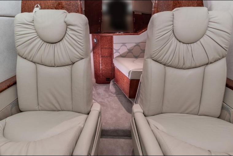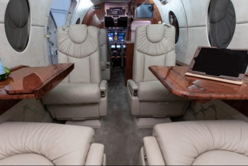 INTERIOR DONE ON 10/2011 Configuration/PAX: Executive/8 passengers Air Conditioning: Freon General: Fireblocked Seating: Beige leather seating, mid-cabin club configuration Headliner: Taupe ultrasuede headliner Carpet: Beige carpeting Refreshment : Large forward galley cabinet Cabinetry/Wood: High-gloss cherry veneer cabinetry, executive tables Lavatory: Flushing belted aft lav |