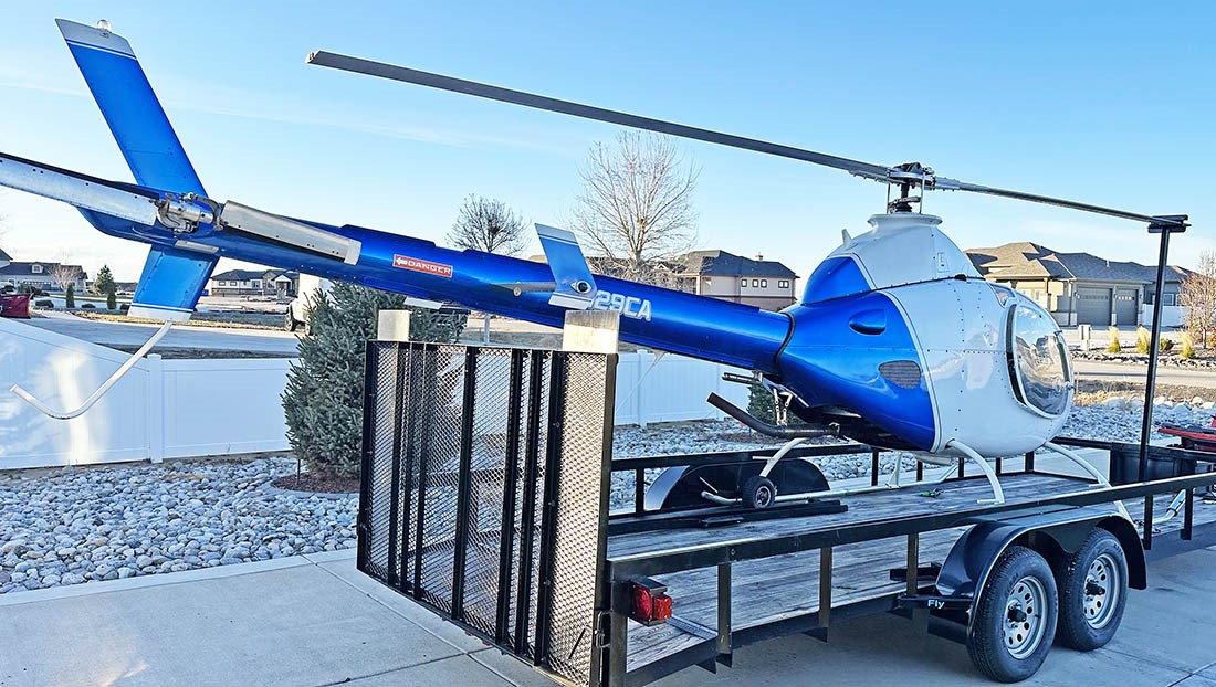 RotorWay Exec-90 2-seat helicopter—Complete. 1994 model; N129CA (expired); S/N 5183. Received its airworthiness certificate in 1997. About 325hrs.TT. Helicopter is complete and fully assembled. Last serviced in 2018 with a top-to-bottom reconditioning. RotorWay expert Mark Peterson completed ship inspection in 2018. Overall condition is very good, but helicopter may need new main rotor blades. *Comes with a road-ready 2-axle trailer. MAIN FEATURES & UPGRADES • Welded, powder-coated steel airframe with tall landing-gear struts. • Full cabin enclosure with ventilated doors. • RI-162 / 150hp engine (carbureted) with Exec-162 cooling system. • Elastomeric rotor system. • 35mm secondary shaft upgrade. • Dual controls. • Full instrumentation in illuminated panels. • Avionics (Terra TX760D Transceiver, Terra TRT250D Transponder, Intercom). • Night Flight Lighting (dual landing lights, running lights, strobe, illuminated instrument-panels. • Ground-handling wheels. • Tupperware container full of RotorWay manuals, prints, books and records. • Purchase includes a roadworthy 2-axle trailer with rear gate. FLIGHT READINESS Helicopter has not flown for a few years, but owner starts and operates engine twice a year. Engine was last run April, 2025. Helicopter will require a renewal of the registration and possibly new main rotor blades. Otherwise, a qualified mechanic must go through helicopter to determine what else, if anything, is needed for flight-readiness. Helicopter has always been stored indoors. No significant rust or corrosion. Paint scheme: blue and white. Located in Colorado. Reason for sale: owner is preoccupied with several business. SPECIFICATIONS: Length: 22 ft; height: 8 ft; width: 65 in.; empty weight: 925 lbs; max. payload: about 500 lbs; gross weight: 1,500 lbs; engine/horsepower: RI-162/150; fuel capacity: 17 gal; max. speed: 115 mph; cruise speed: 95 mph; rate of climb: 1000 fpm; flight duration: 2+ hours; hige: 7,000 ft; hoge: 5,000 ft; max. altitude: 10,000 ft. |