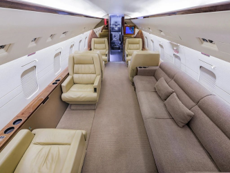 Configuration/PAX: Executive/9 passengers General: Interior refurbished in 2024 Seating: Six individual leather seats, forward 4-place club, aft 2-place club opposite 3-place fabric divan, stowable jumpseat Refreshment: Fully-equipped forward galley w/microwave oven, coffeemaker, ice chest & food carriers Cabinetry/Wood: Foldout tables Entertainment: Airshow 400, DVD/CD player, forward & aft flat-screen monitors, Audio International switching for all cabin controls Business : GOGO AVANCE L5/5G high-speed internet & Wi-Fii, aft AFIS computer port Accessories: Therapeutic oxygen port Storage: Forward storage closet Lavatory: Enclosed aft lav w/storage compartments & closet |