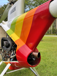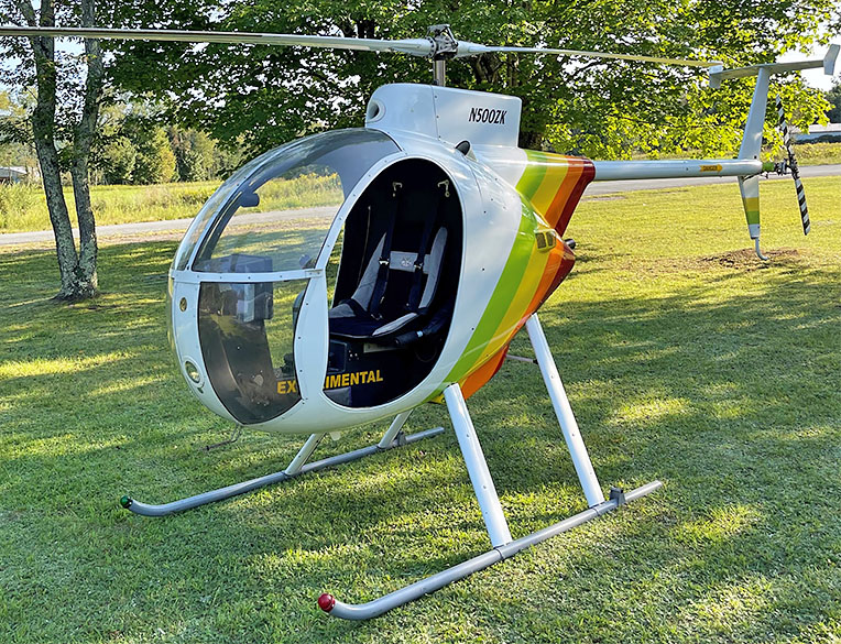 Mini-500 single-seat, experimental helicopter, complete, 1996 model. About 110 hrs. total time. N500ZK; S/N 144. Features: Powered by a 70hp Rotax 582 engine with the PEP system upgrade; composite main rotorblades and aluminum tail rotorblades; a comfortable full-cabin enclosure; full instrumentation; lighting (red and green lights on skids, nose light and tail light); a shaft-driven tail rotor; ground-handling wheels, A road-ready 2-axle trailer is available for an additional $2K (not shown). Condition: Mechanically and cosmetically very good (interior/exterior a 7/8), with no rust or corrosion. No damage history. Is regularly started and flown. Flies exceptionally well. Flight readiness: Helicopter is complete and ready to fly Ready for pickup or shipment. Located in North Carolina. _________________________________________ SPECIFICATIONS: Length: 22½ ft; height: 8 ft; width: 5¼ ft.; empty weight: 350 lbs; max. payload: about 350 lbs; horsepower: 70 with PEP; max. speed: 110 mph; cruise: 75 mph; VNE: 130 mph; rate of climb: 1100 fpm; flight duration: 2 hours; max. altitude: about 10,000+ ft. |