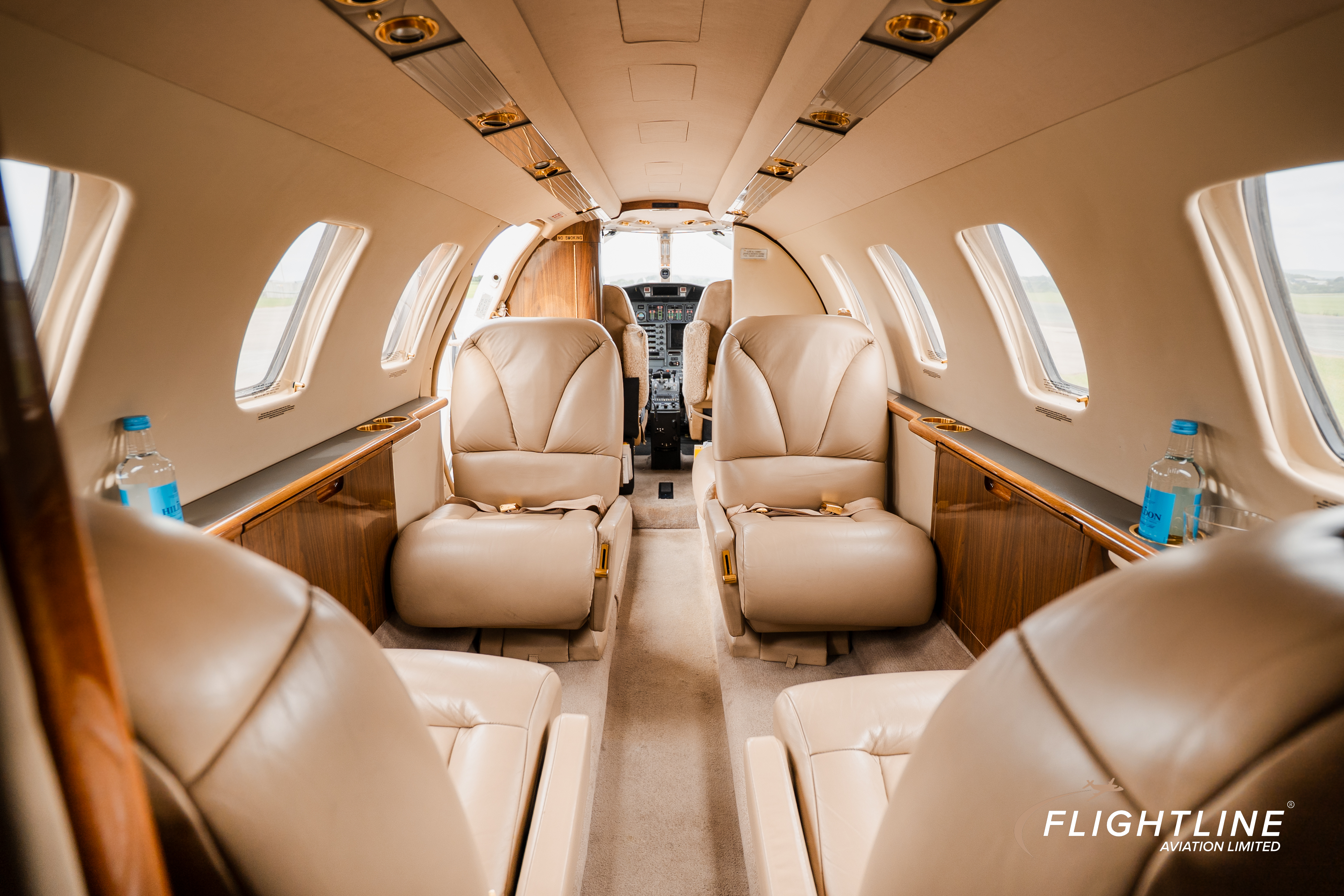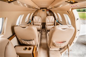 Tan Leather Interior - 7.5/10 2 Crew / 5 Passenger Interior + 1 Belted Lavatory FWD Refreshment Centre Dual Executive Writing Tables AFT Belted Lavatory |