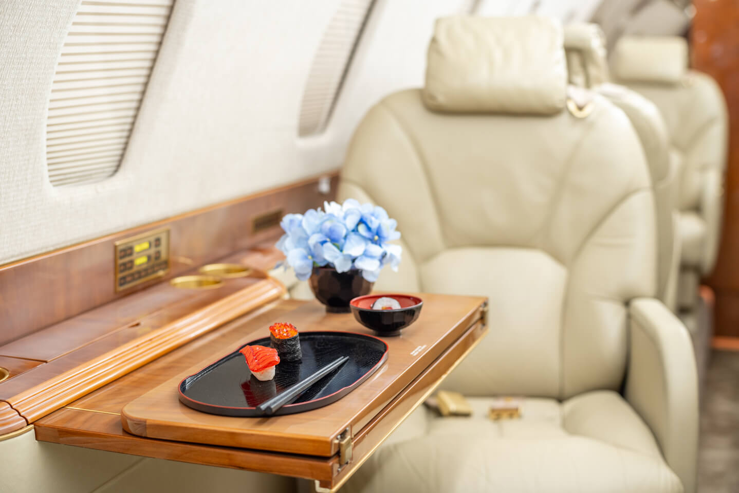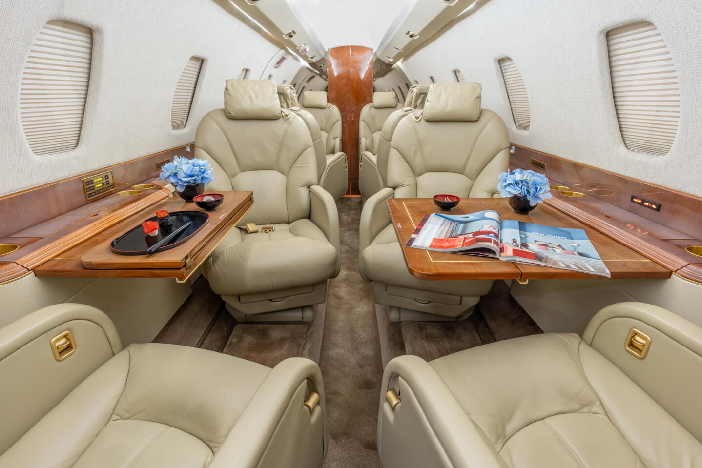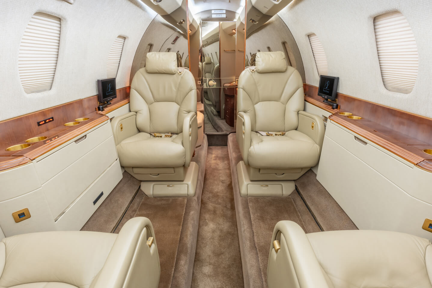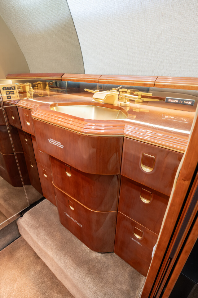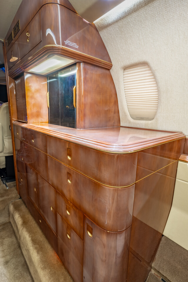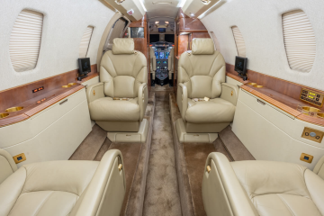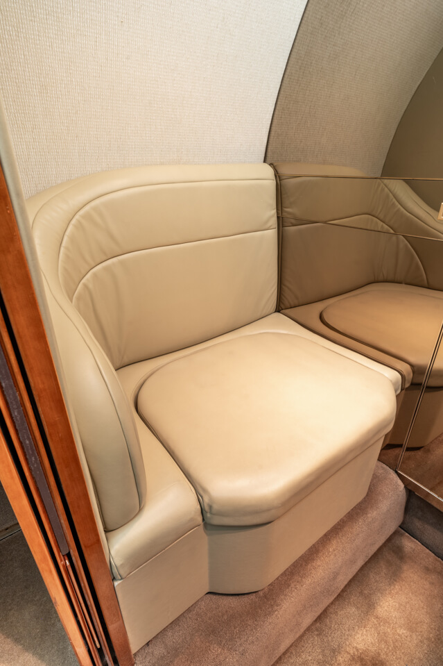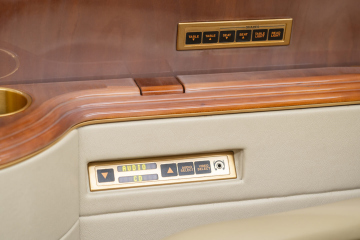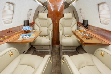 Citation X serial number 24 features a comfortable 8 passenger interior with belted aft lavatory and is configured with double, four place club seating arrangements with pull-out executive tables. The passenger seats are finished in beige colored Erdman leather. The high gloss finish woodwork is perfectly complimented with bright gold plating. The cabin entertainment and information system includes a multi-disc DC and moving map - both of which can be displayed on six removable drink ledge Rosen monitors. The full-width lavatory aft of the passenger cabin is separated by a bulk-head with sliding pocket door and includes a storage closet and custom vanity with wash basin. The forward, full-service galley includes a microwave oven, coffee dispenser and ample storage. The in-flight passenger connectivity is provided by the Gogo Biz Avance L5 high speed data system. Additional amenities include LED lighting, USB ports at all cabin and cockpit seats and 110VAC outlet at each club seat |