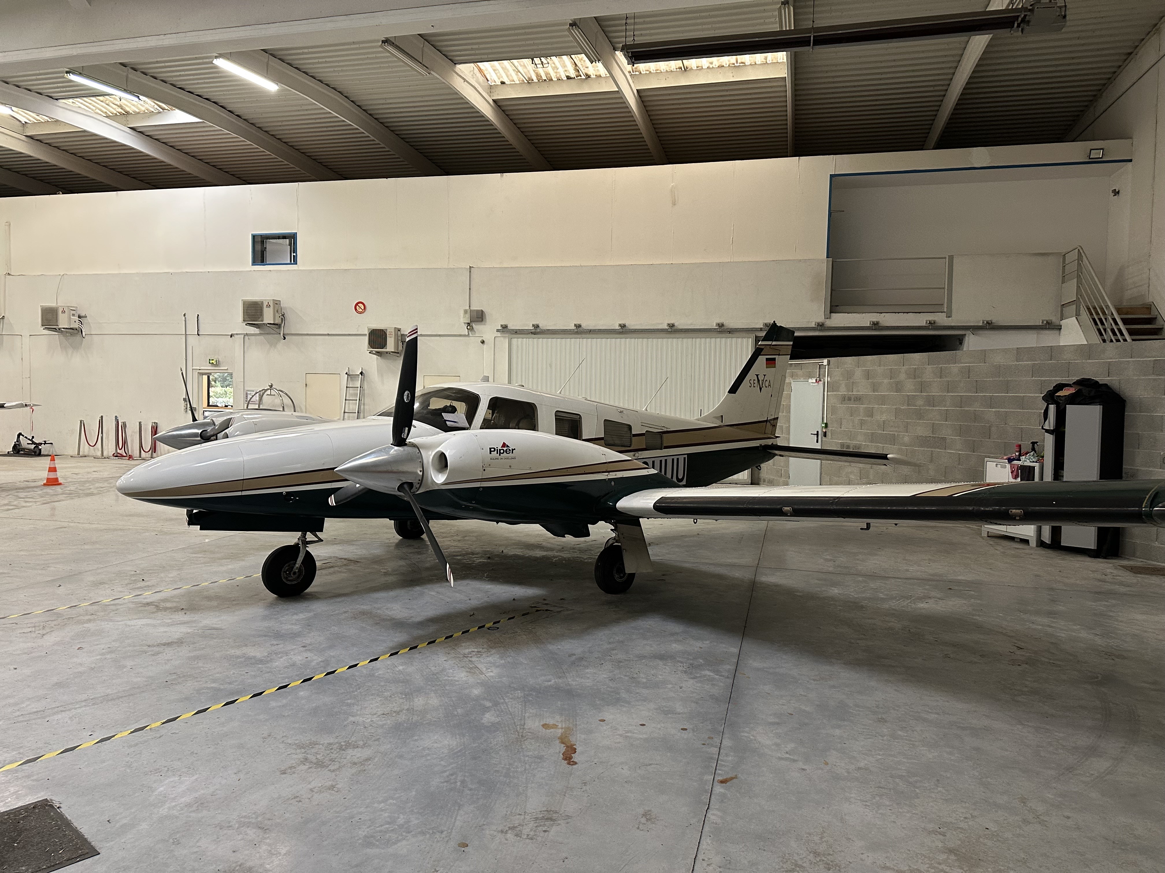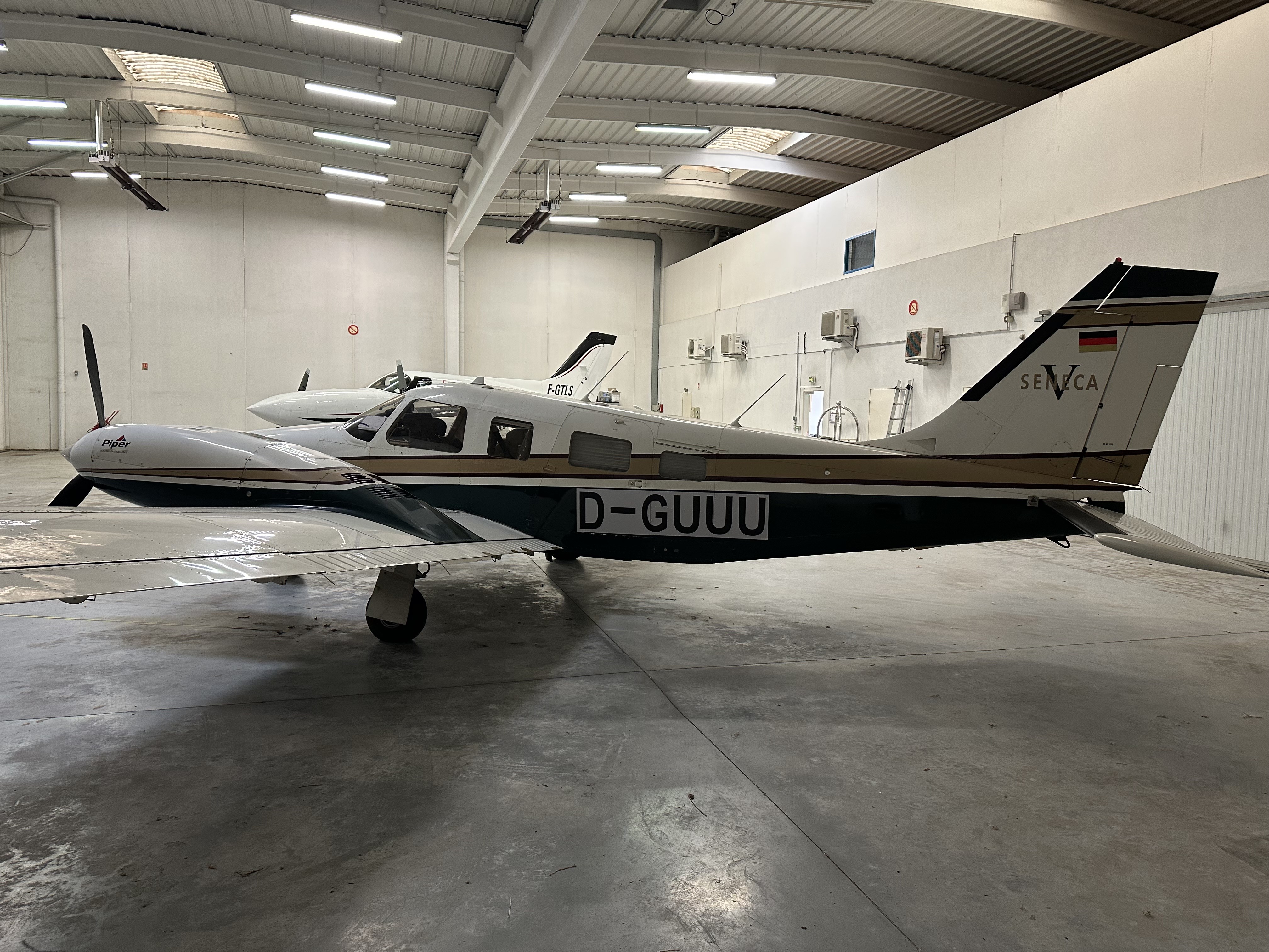 Piper PA-34-220T Seneca V with Camera Hole STC for large Cameras or Sensors. All of the original 6 leather seats are avialable anyway. The plane is well equipped with original factory Air Conditioning and the 6 place Oxygen System. |