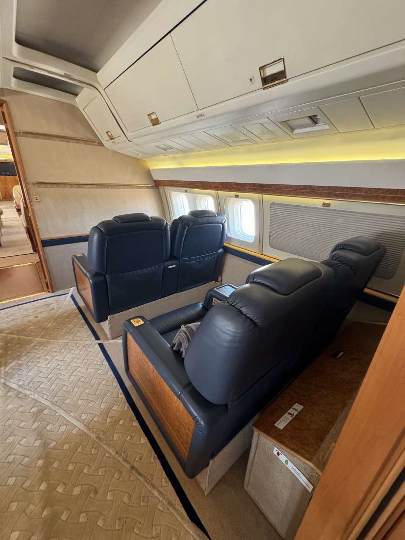 Configuration: Forty-Four (44) Passengers in VIP Configuration Flight Attendants; Seven (7) Cockpit: Two (2) Crew and Two (2) Observers Galley Location: Forward Lavatory Location: Two (2) Mid Cabin and One (1) Aft Cabin Cabin Configuration: Fwd Crew Rest Area, Twelve (12) PAX Fwd Staff Area; Twelve (12) PAX Lounge Area; Nine (9) PAX Dining Opposite a Credenza, Ten (10) PAX Mid Cabin Staff Rest Area; Seven (7) PAX Sitting Room; Aft Master Bedroom; Master Washroom with Lavatory, Shower, and Storage Cabinets |
