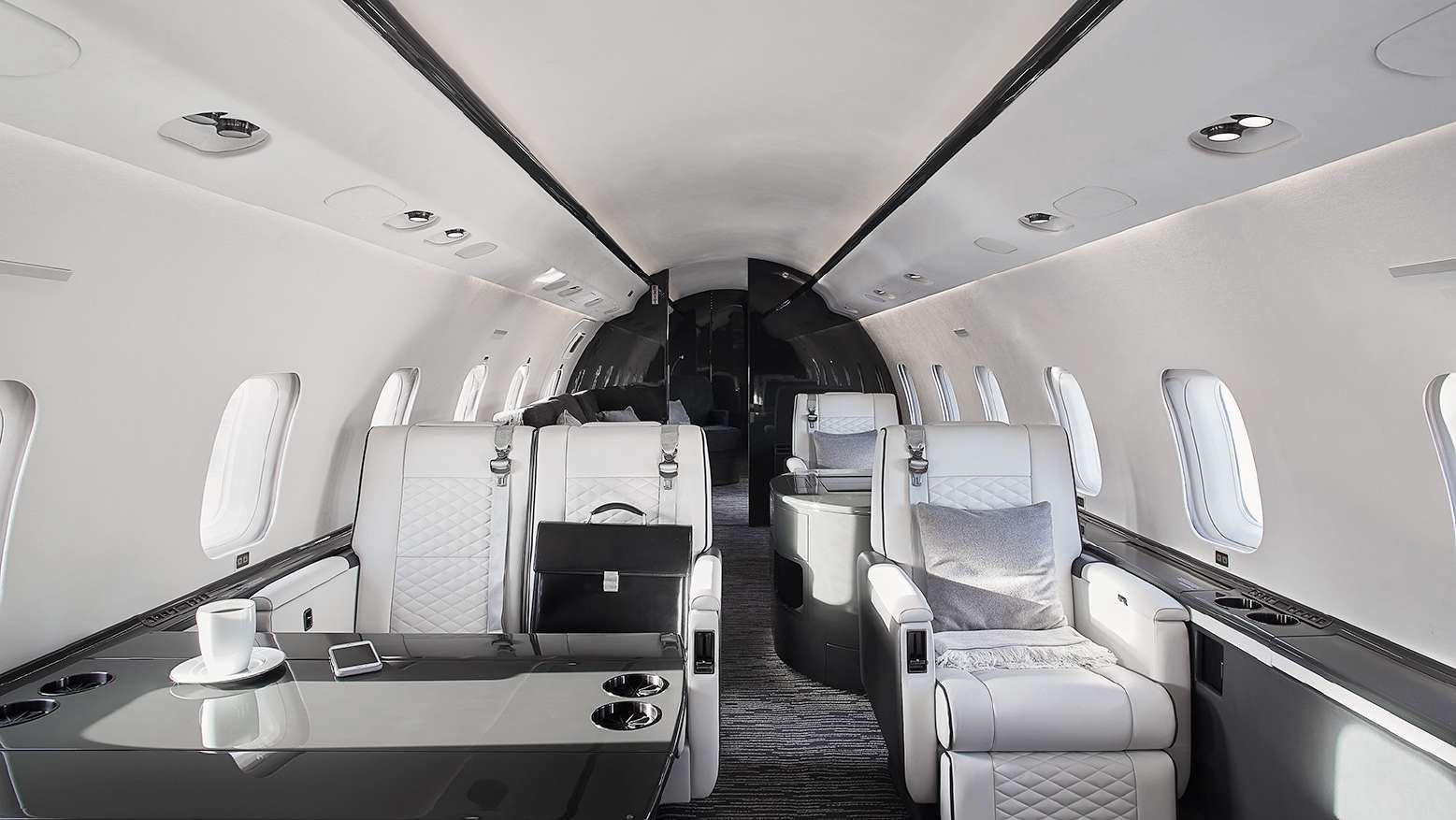 Number of Passengers - Nine (9) Passengers Galley Location - Fwd with Aft Refreshment Centre Fwd. Cabin Configuration - Four (4) Place Conference opposing Two (2)-Place Club Mid Cabin Configuration - Single Seat Opposing a Three (3)-Place Berthable Divan* Aft. Cabin Configuration - Single Seat Opposing Two (2)-Place Diag. Berthable Divan* Lavatory Locations - Fwd & Aft Crew Rest - Yes, With Closeout Curtain Jump Seat - Yes |