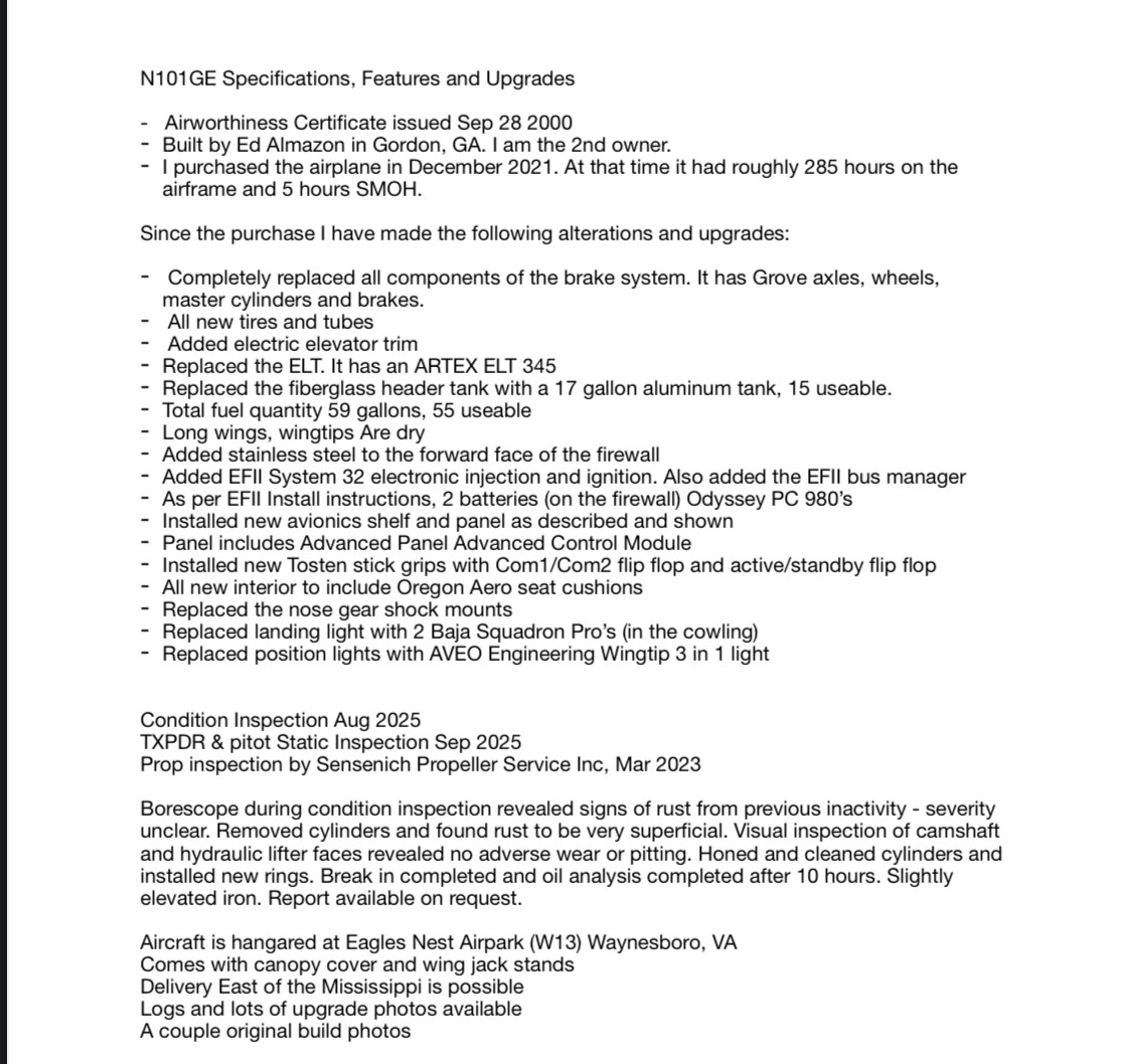 Updated IFR glass cockpit Possible delivery east of the Mississippi. |