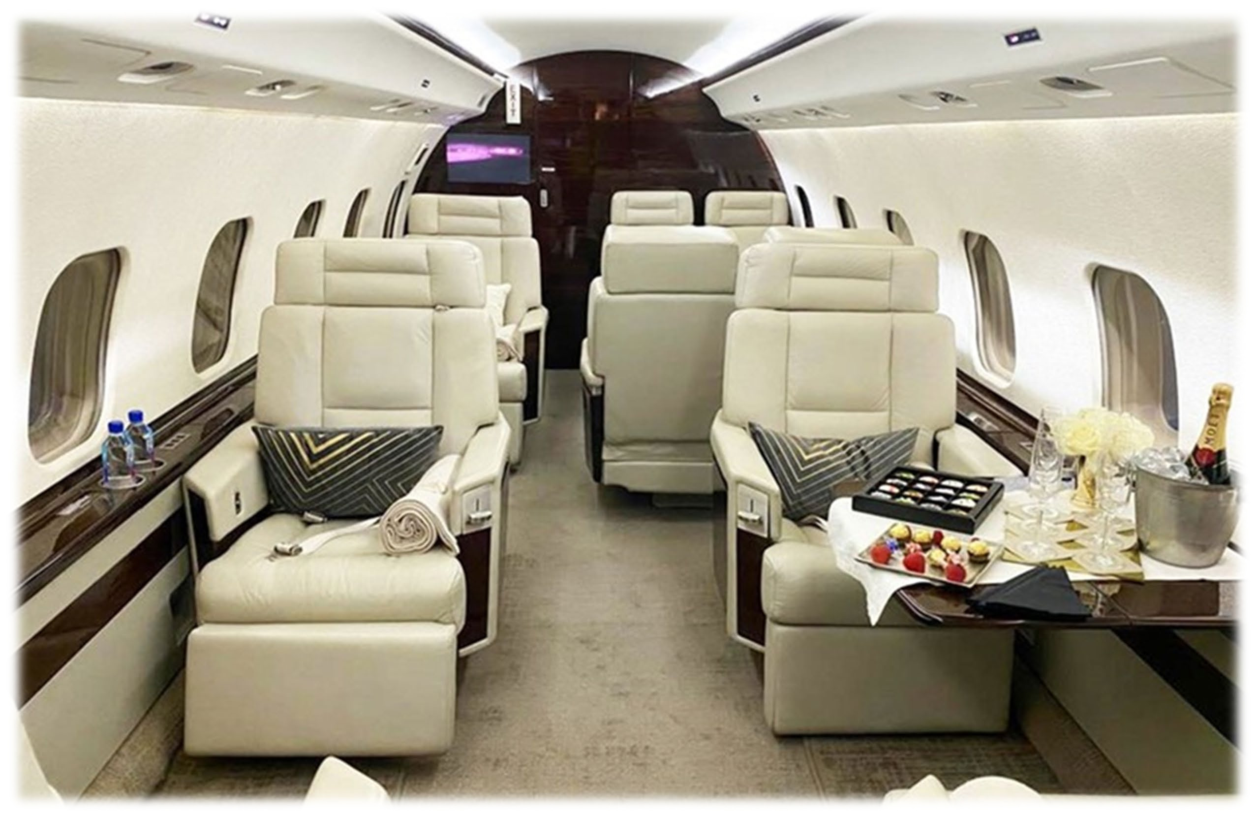 Number of Passengers Thirteen (13) Passengers Galley Location Forward Fwd. Cabin Configuration Four (4) Club Seats Mid Cabin Configuration LH Four Place Conference Single Fwd Facing VIP Seat Aft. Cabin Configuration Two (2) Club Seats Opposite Three Place Divan Lavatory Locations Fwd and Aft Crew Rest Yes, With Closeout Curtain Jump Seat Yes |