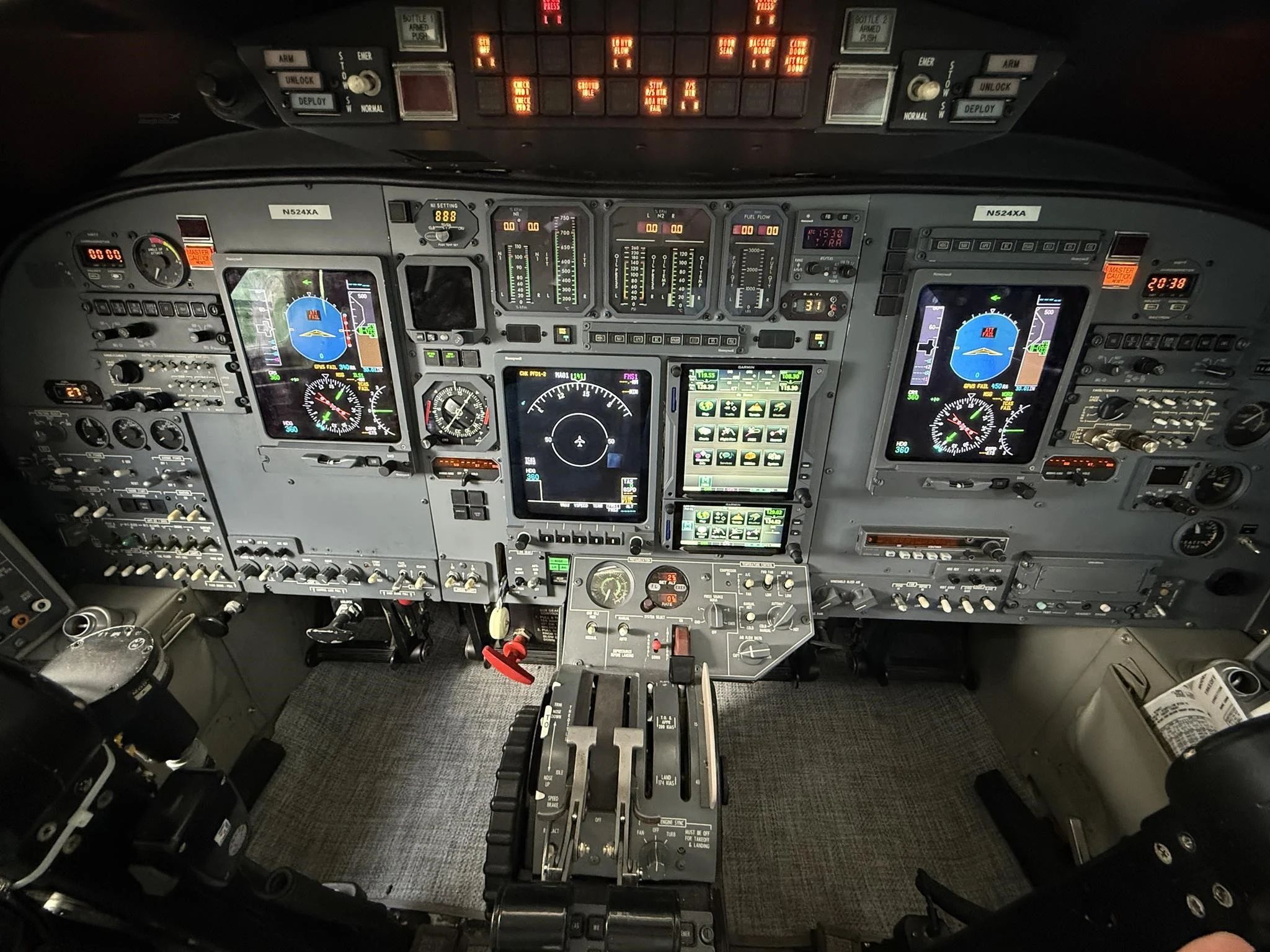 Flight Deck Manufacturer/Model - GARMIN ADS-B Equipped - Yes WAAS - Yes LPV - Yes Garmin GTN-750xi GPS Nav/Com Garmin GTN-650xi GPS Nav/com Honeywell PRIMUS1000 Integrated Avionics System with Integral FMS Honeywell Primus 660 Color Radar Universal UNS1-K Honeywell KR 87 Honeywell AA 300 Radar Altimeter Fairchild FA2100 (120 min) CVR Safeflight N1 Computer System GH 3000 Electric Standby Instrument Honeywell Mark VII EGPWS w/windshear Honeywell KGP-860 Class B M877 Chronometer Dual Honeywell AZ 850 Air Data Computers Dual Honeywell ACSS NXT 700 Transponders A CSS NXG 900 WAAS GPS Receiver Dual Honeywell Az 850 Air Data Computers Honeywell CD 820 Control Display Unit MD 302SAM King KHF-950 SSFDR w/ULB Collins ALT-55B Honeywell DM 441B DME's Honeywell TPU 67A TCAS II w/change 7 Artex C406-2 3-Frequency ELT Davtron Digital Chronometer |